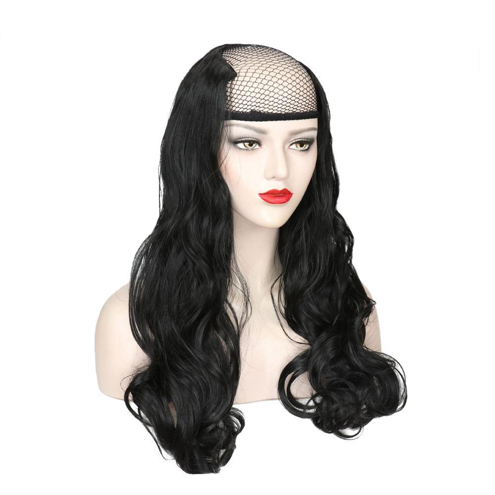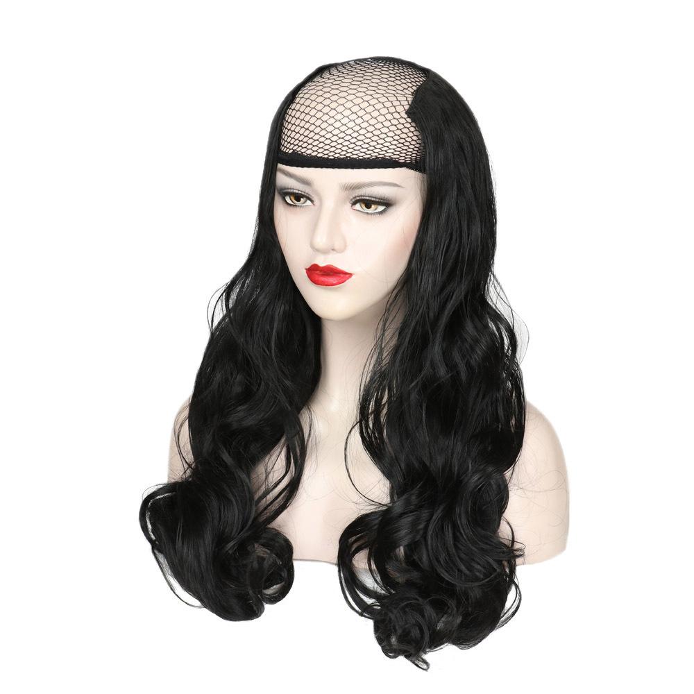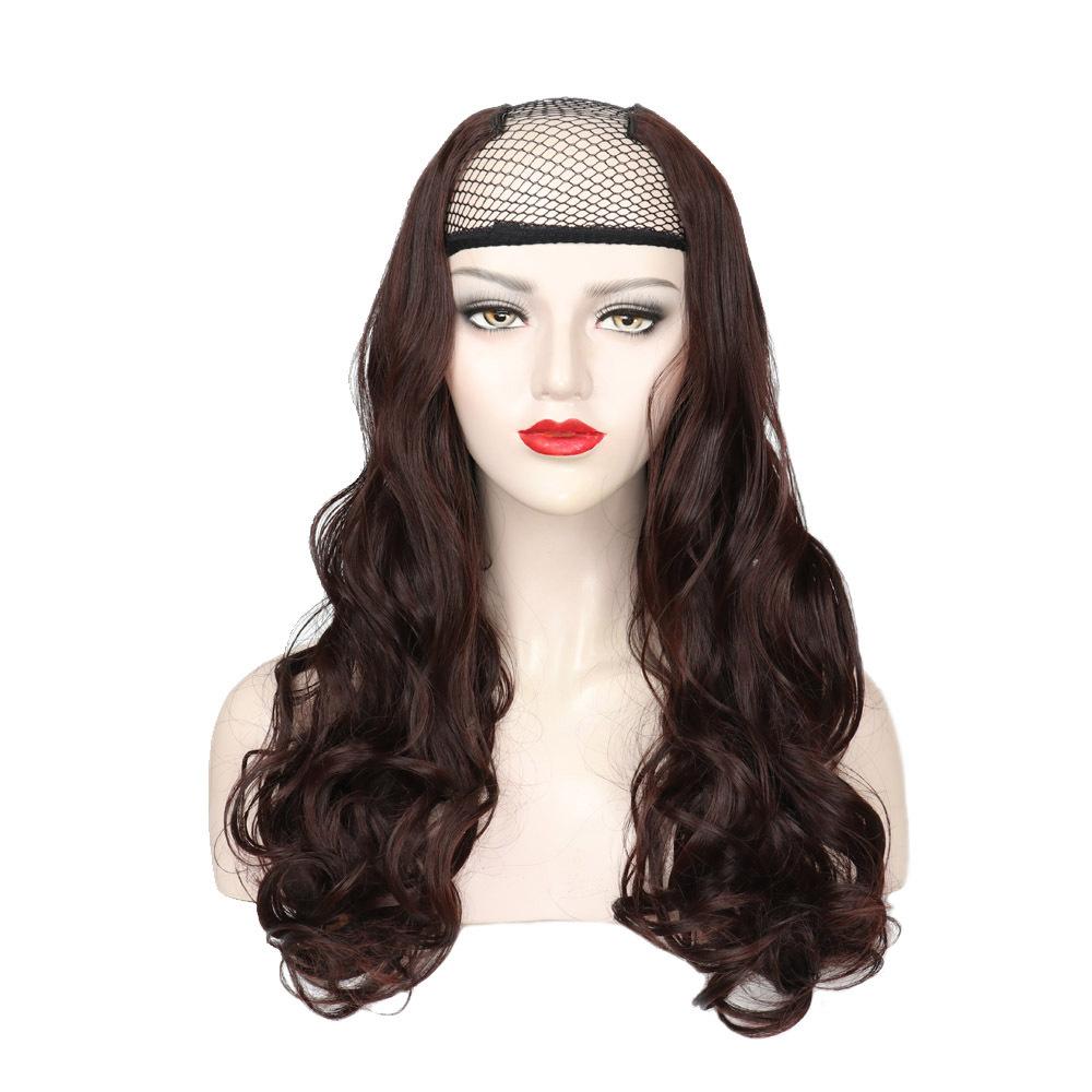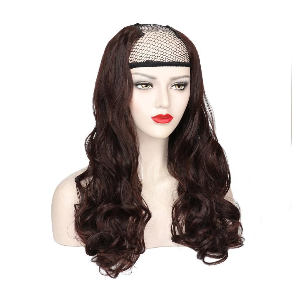 Meia capa de cabeça cabelo longo encaracolado onda grande invisível sem costura fábrica de cabelo direto geração peruca em forma de U meia peruca de capa de cabeça