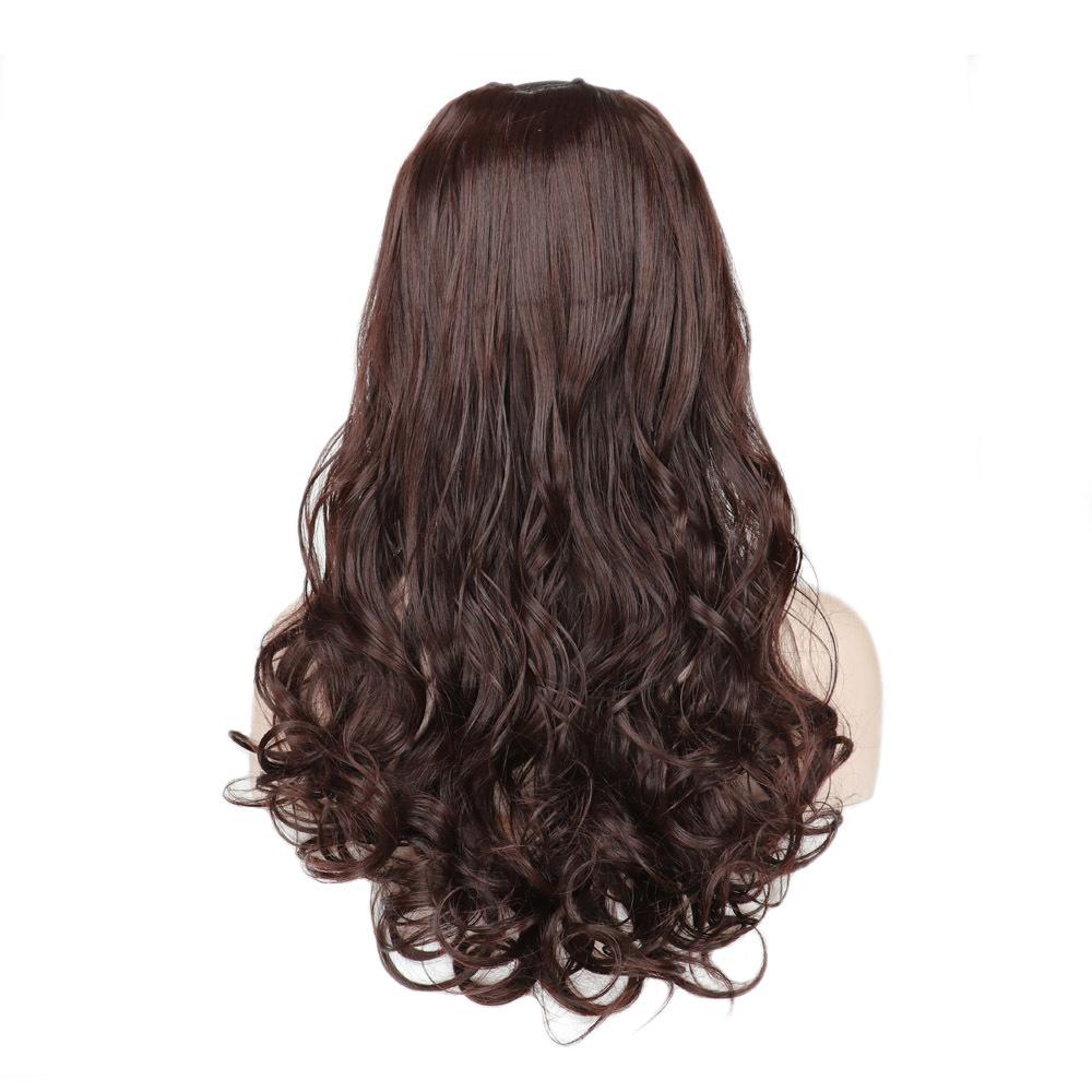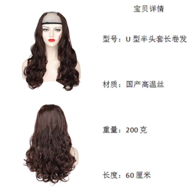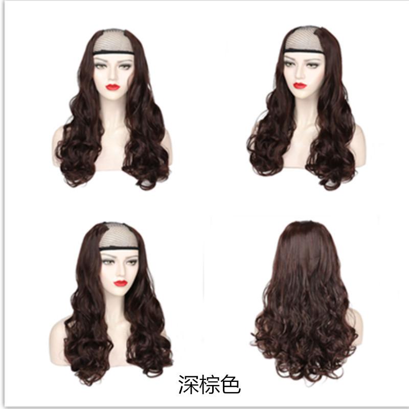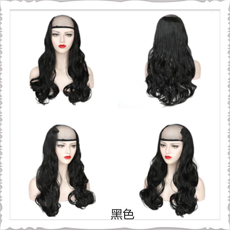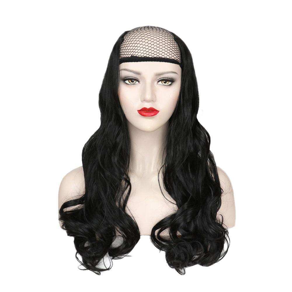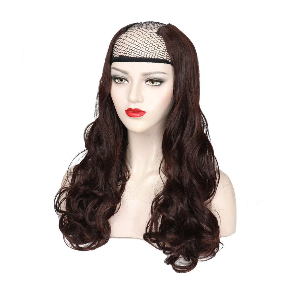 Meia capa de cabeça cabelo longo encaracolado onda grande invisível sem costura fábrica de cabelo direto geração peruca em forma de U meia peruca de capa de cabeça