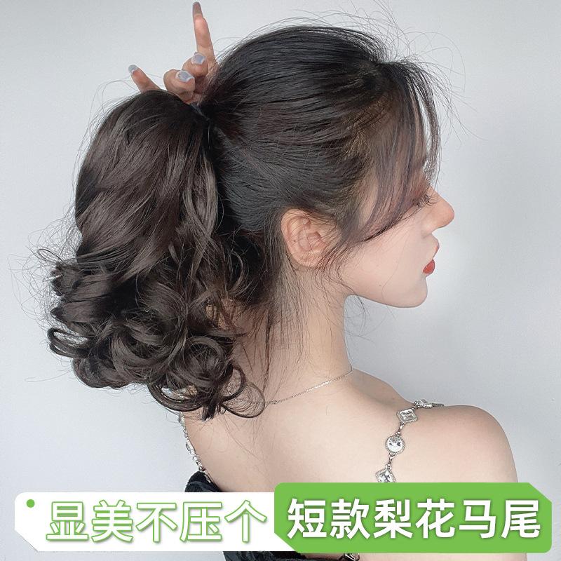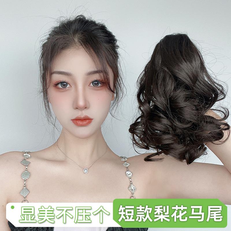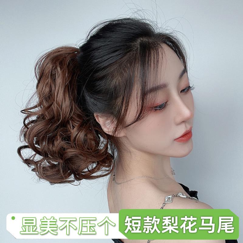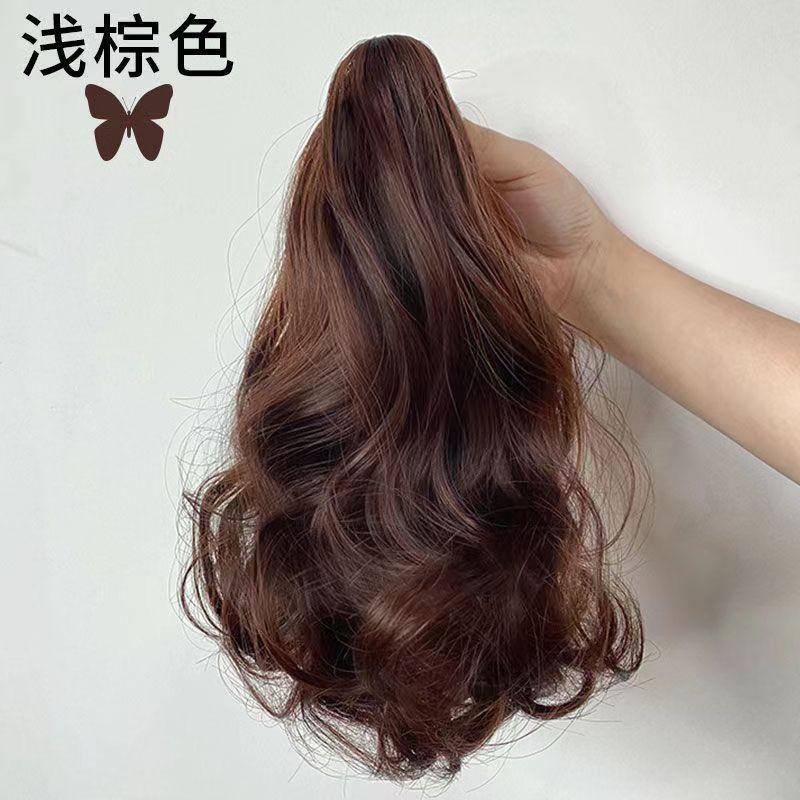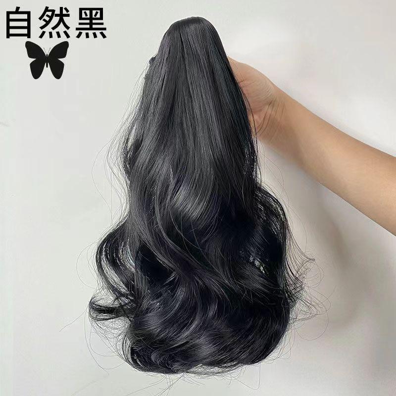 Fábrica atacado peruca rabo de cavalo feminino aperto curto temperamento de onda grande cabelo encaracolado longo simulação rabo de cavalo realista