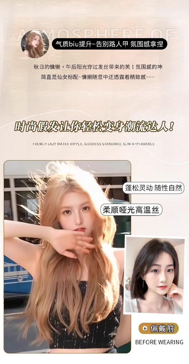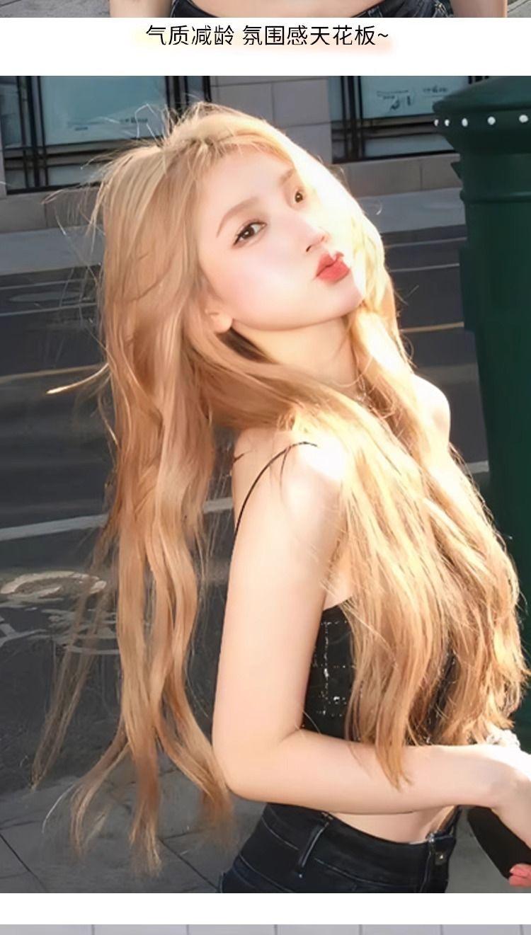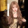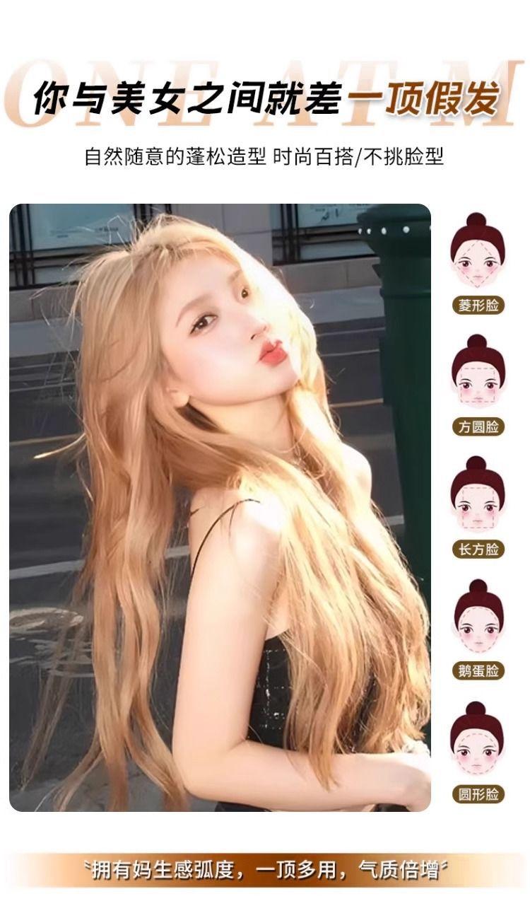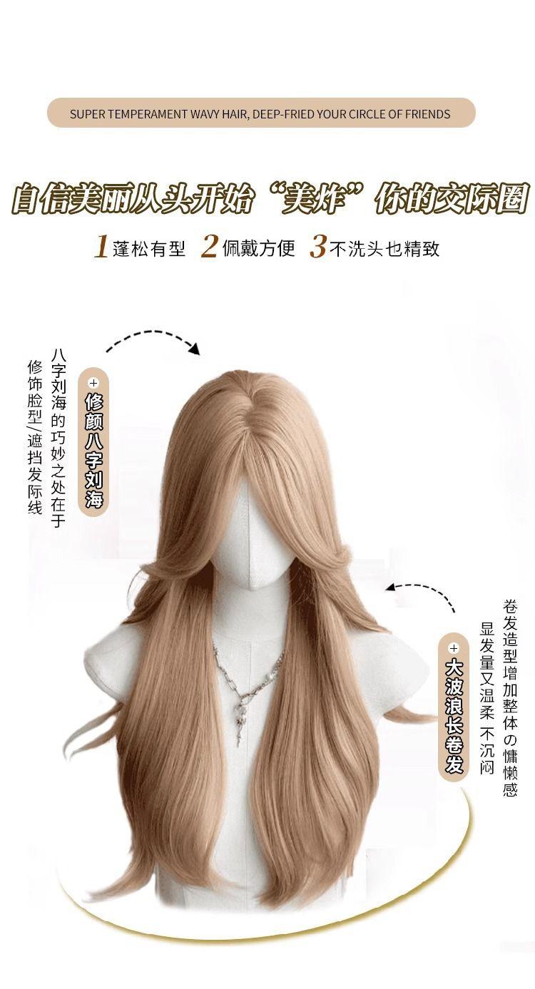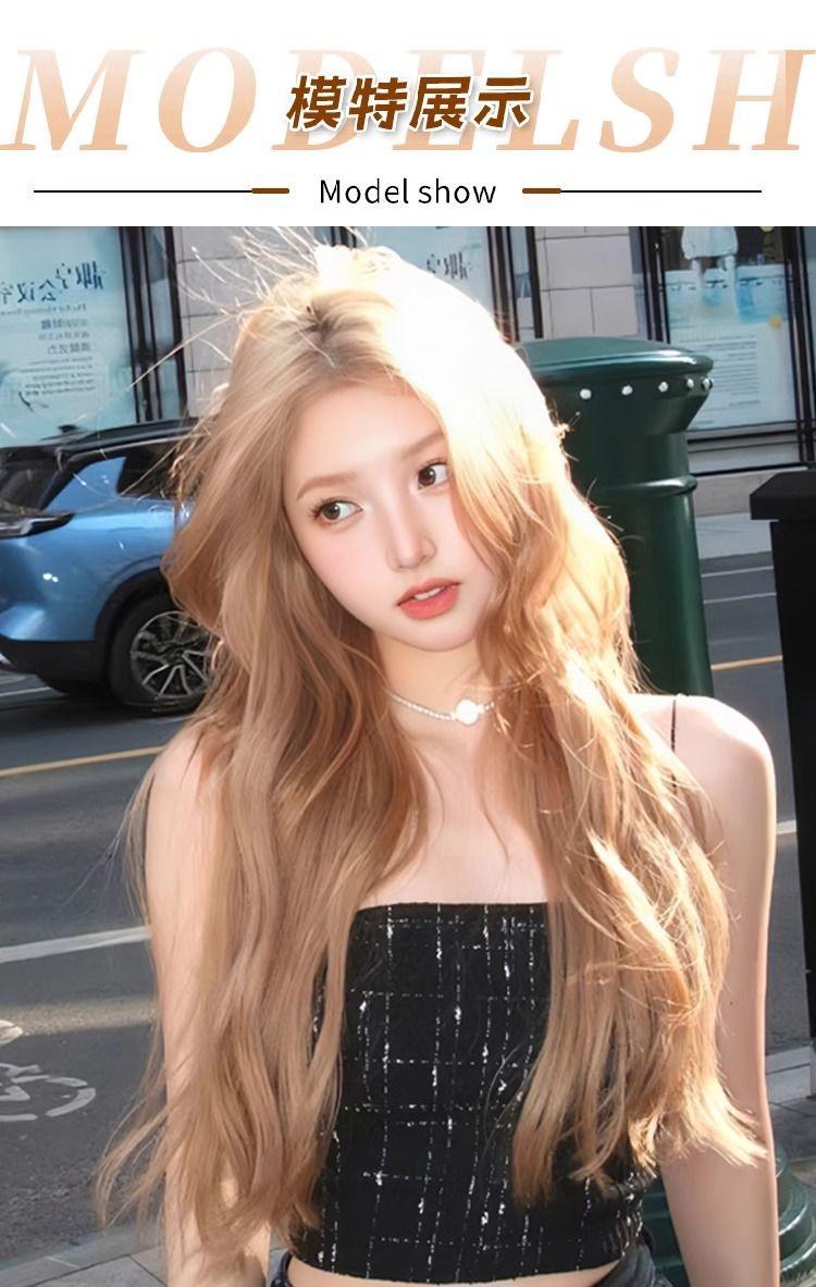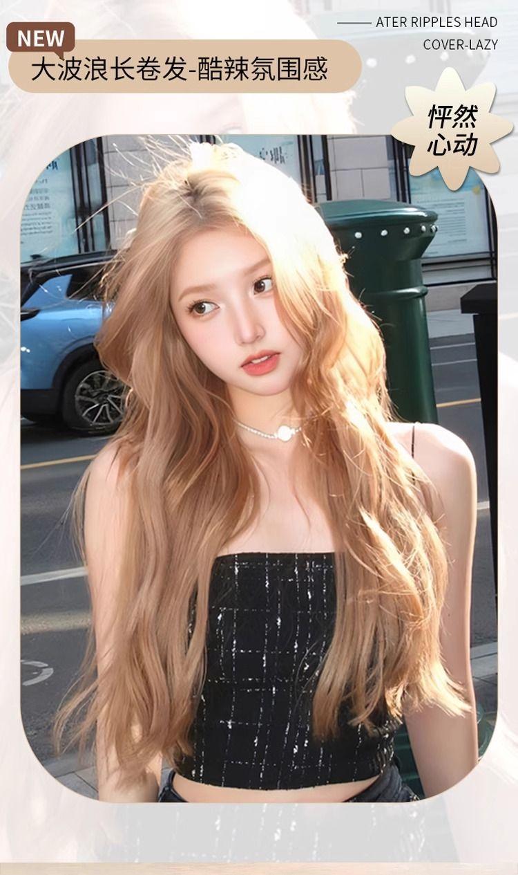 Testa Peruca Do Laço Cabelo Comprido Das Mulheres Champanhe Natural Fofo Onda Grande Encaracolado Cabelo Simulação Cabelo Rachado Cabeça Completa Cobrir