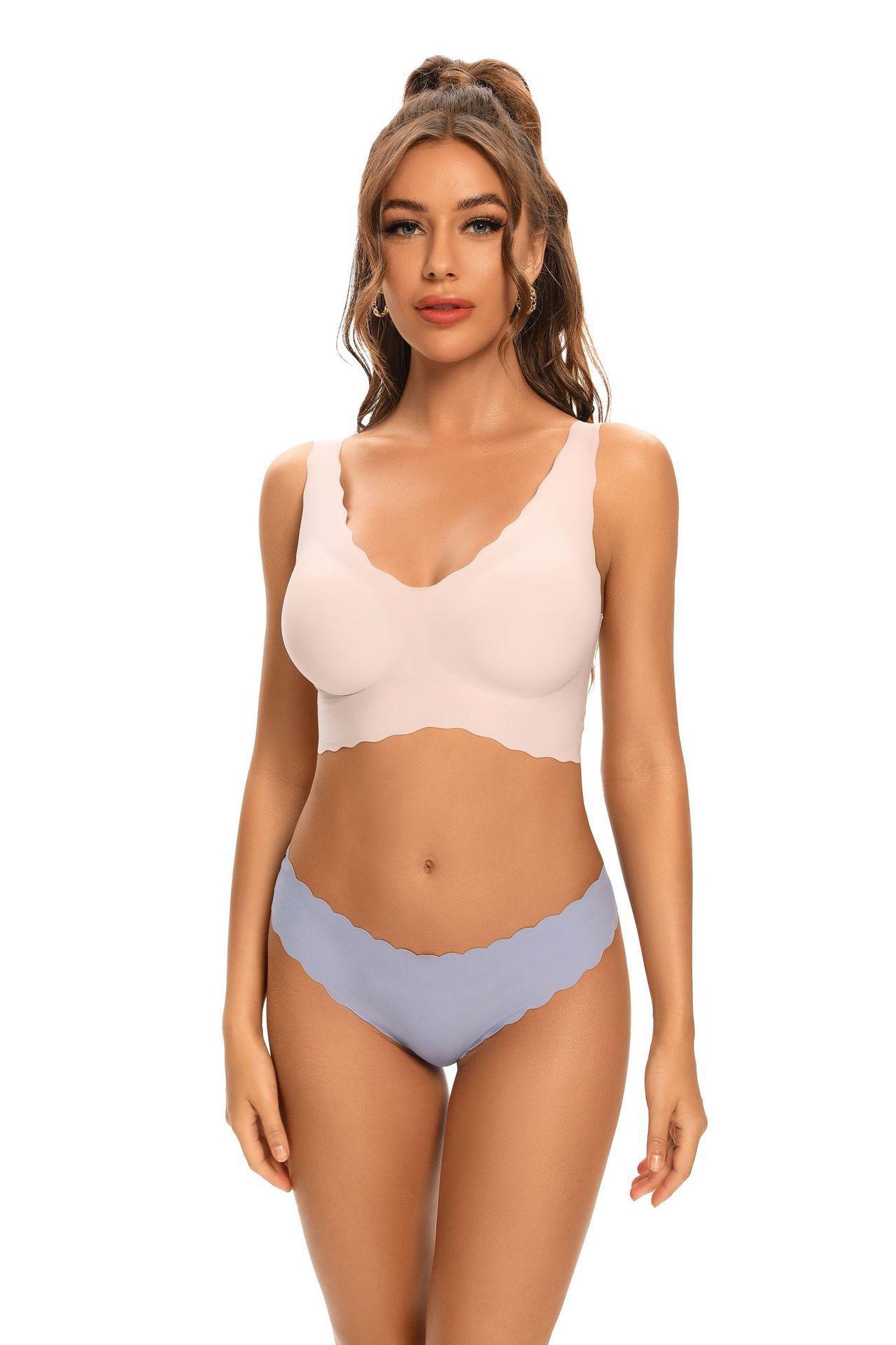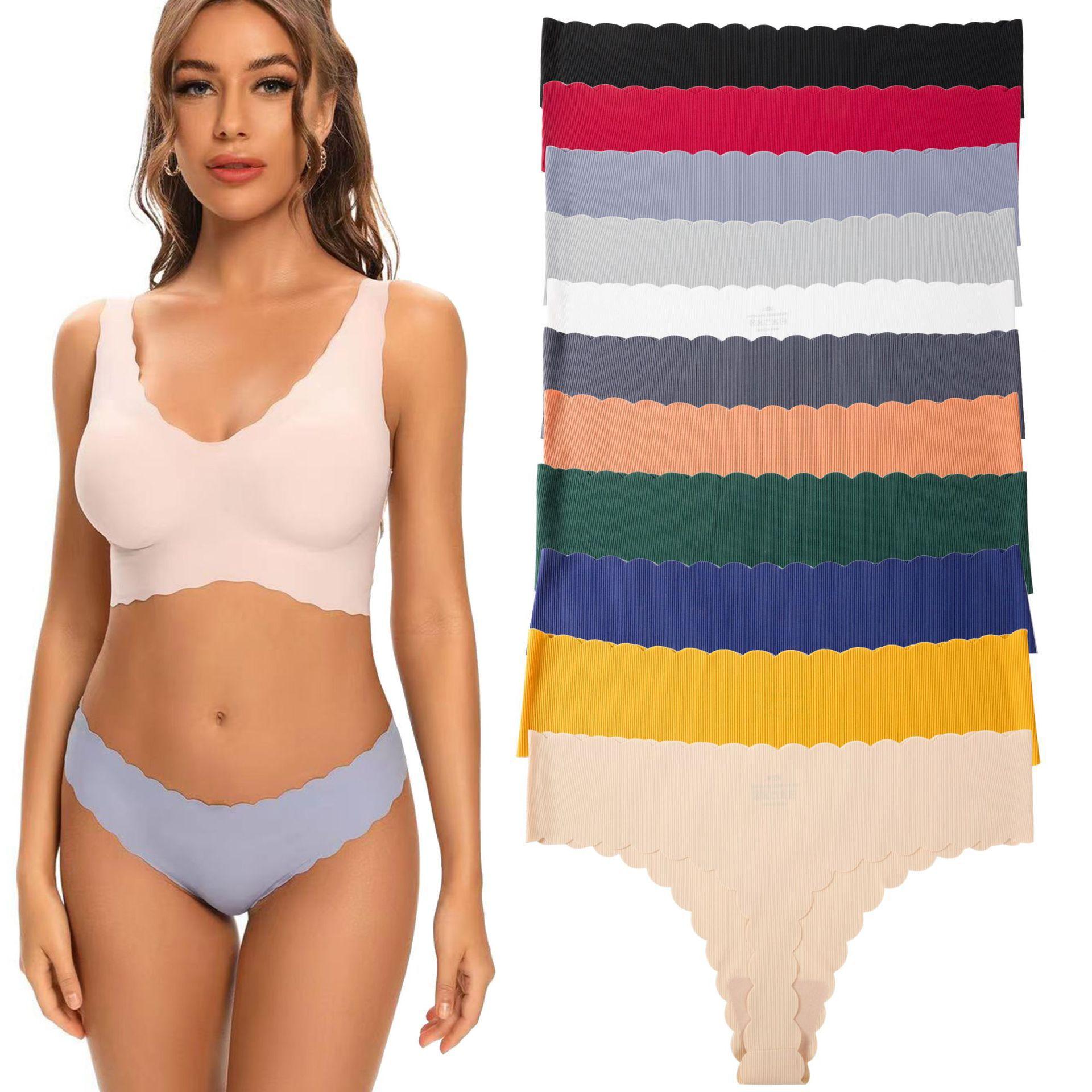 Amazon Biquíni Fio Dental Sem Costura com Borda Ondulada e Entrecoxa de Algodão Puro para Mulheres Cintura Baixa Sem Costura