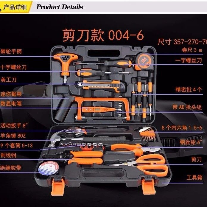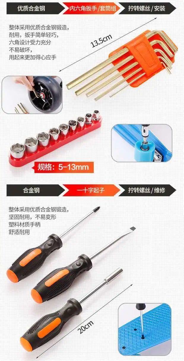 ! As ferramentas de reparo da caixa de ferramentas de hardware do carro doméstico se adequam à combinação de hardware multifuncional da família