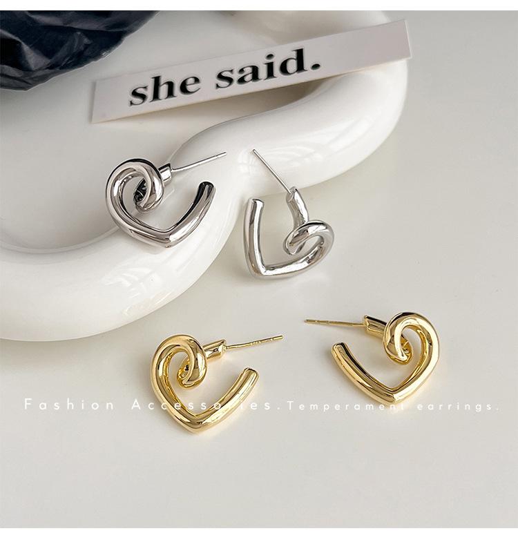 Design sense of love earrings s925 Silver (Silver), Design sense of love earrings s925 Silver (gold)