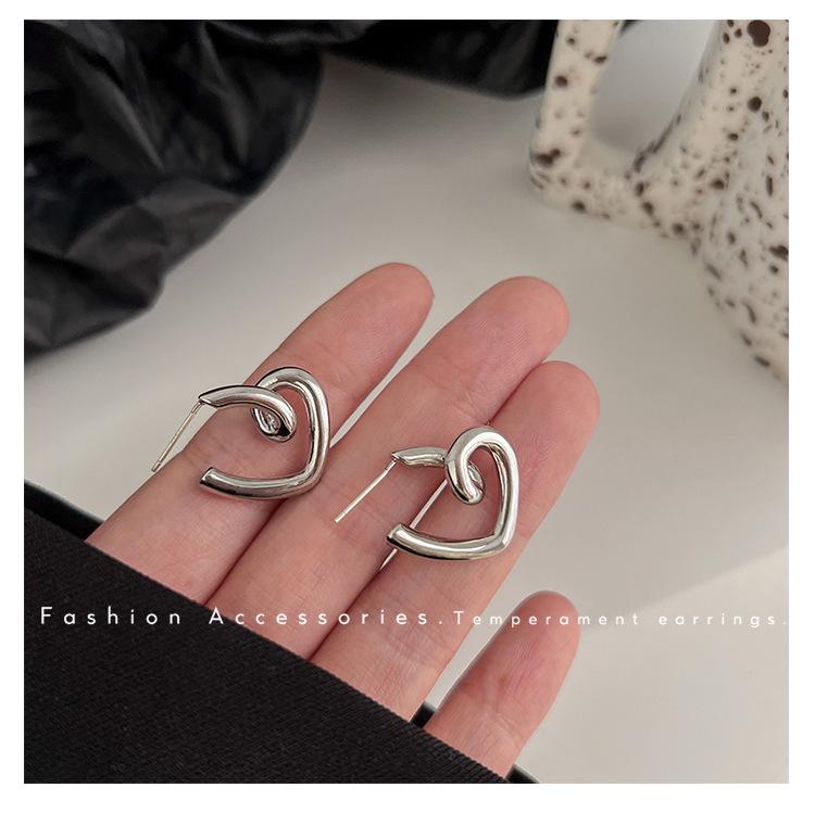 Brincos de amor estilo frio Design de nicho Brincos de alta qualidade em brincos simples e distintos de verão, doces e legais de prata esterlina