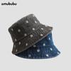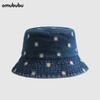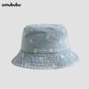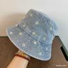 Chapéu de pescador de denim lavado retro transfronteiriço para mulheres de viagem de primavera e verão Chapéu de sol bordado com margarida estilo coreano para homens