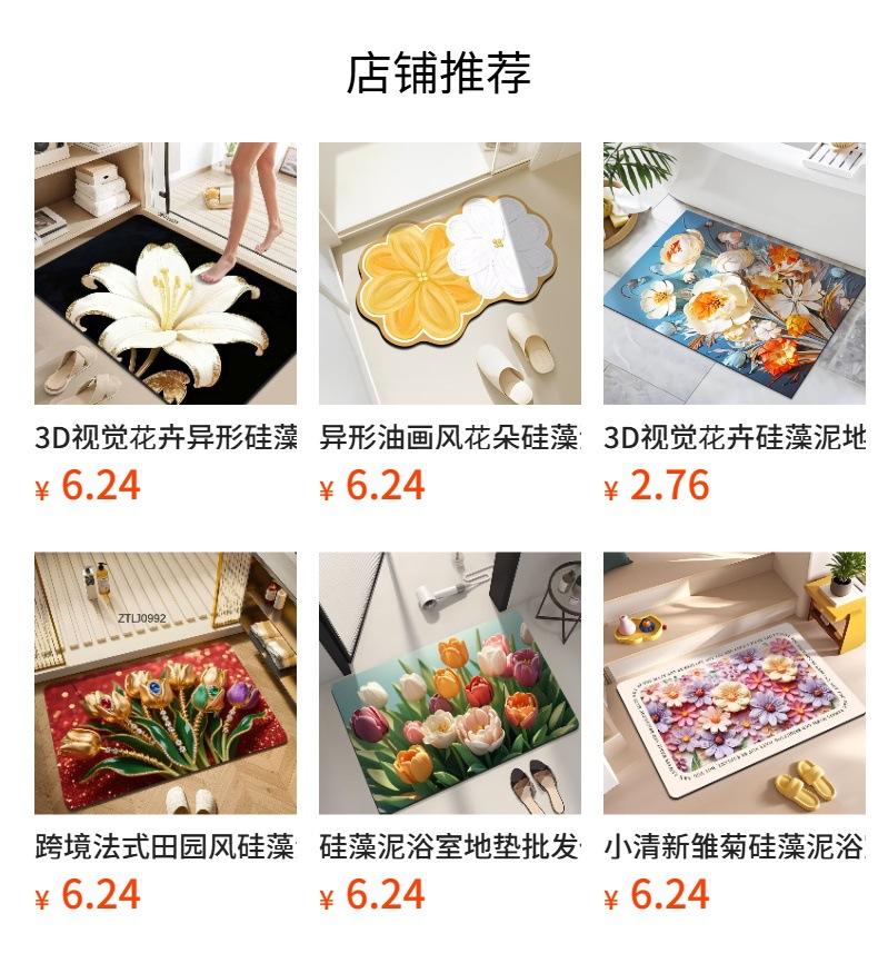 Tapete de Chão de Flores Tridimensional Transfronteiriço Diatom de Banheiro Lama Antiderrapante Resistente à Sujeira Tapete Absorvente Doméstico