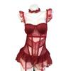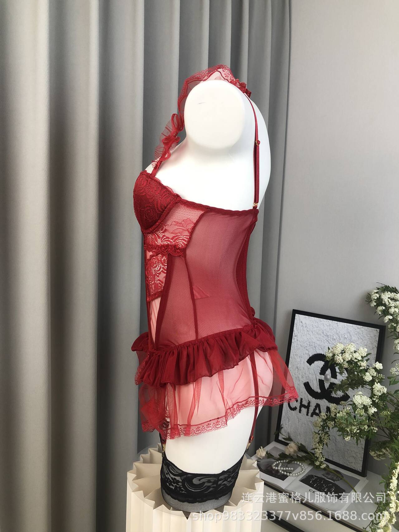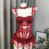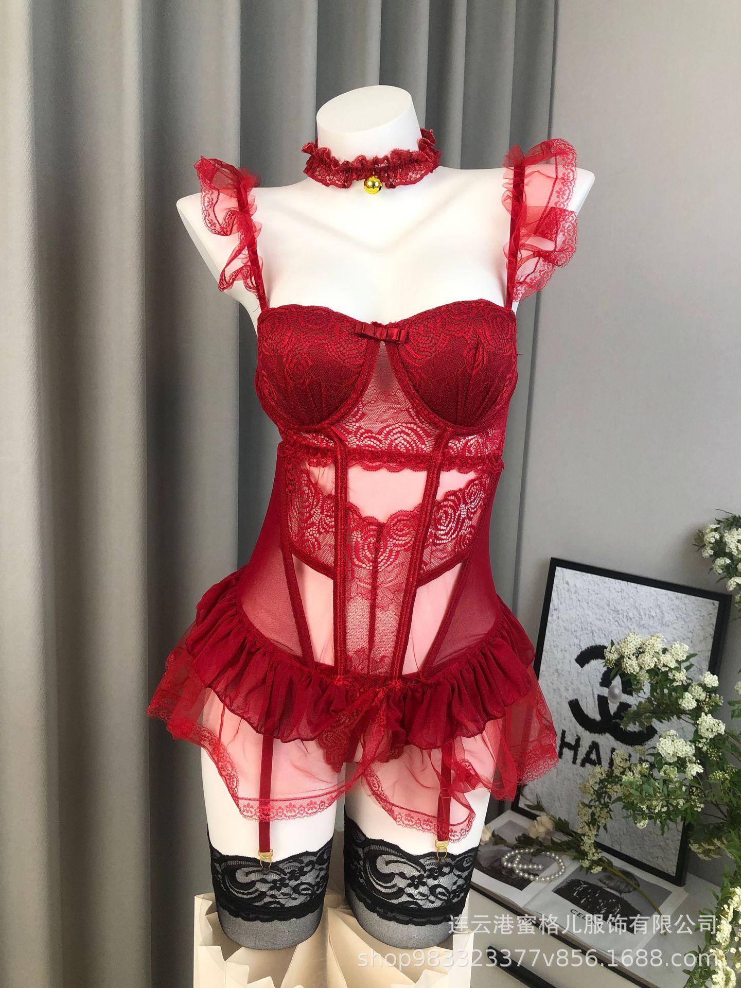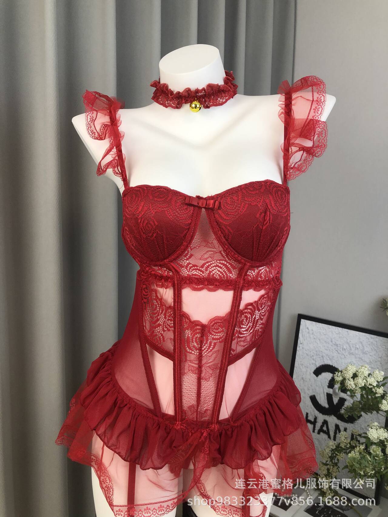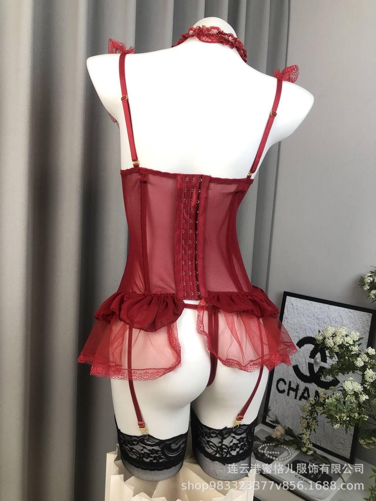 wine red [chest pad vest open underwear]], wine red [chest pad vest open underwear] black stockings