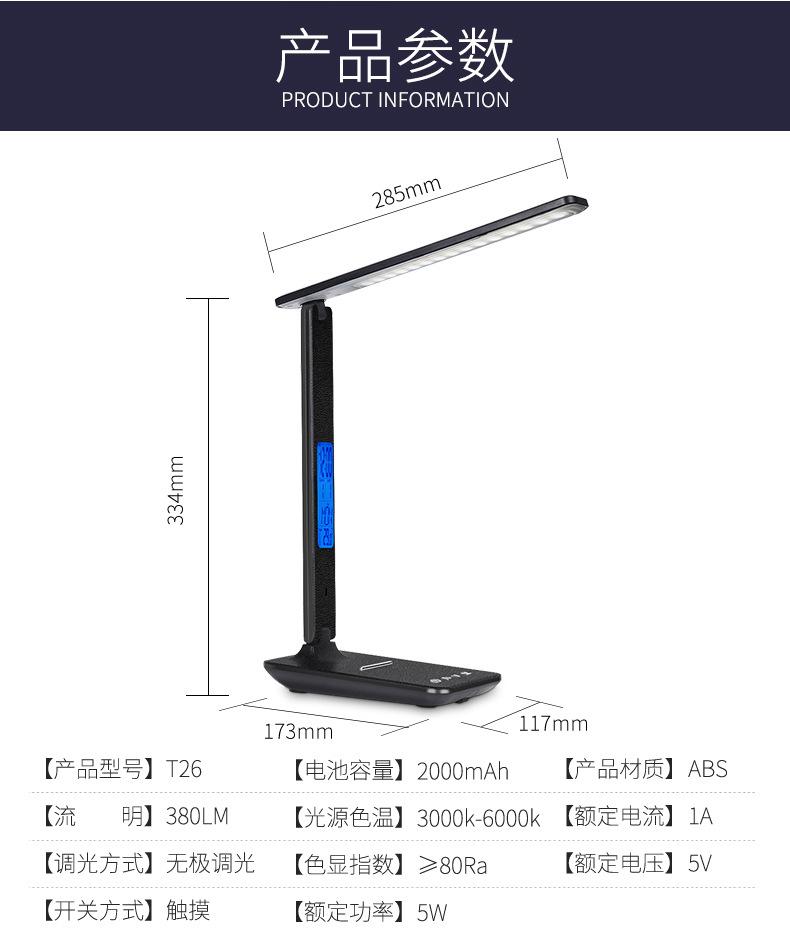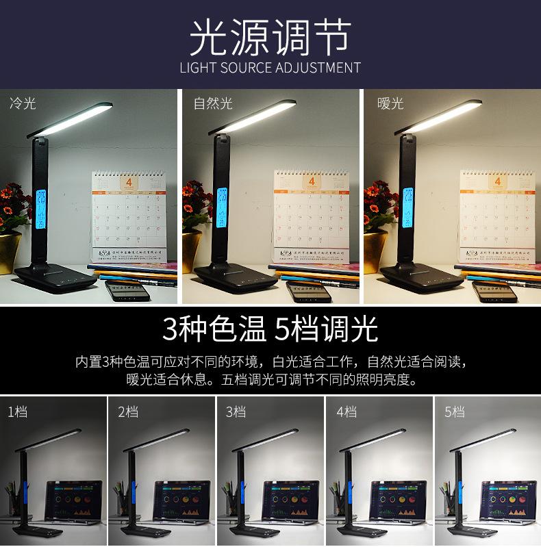 Recarregável Dobrável Recarregável Relógio Despertador Calendário Estudante Proteção para os Olhos Quarto Escritório Toque Lâmpada de Mesa Led