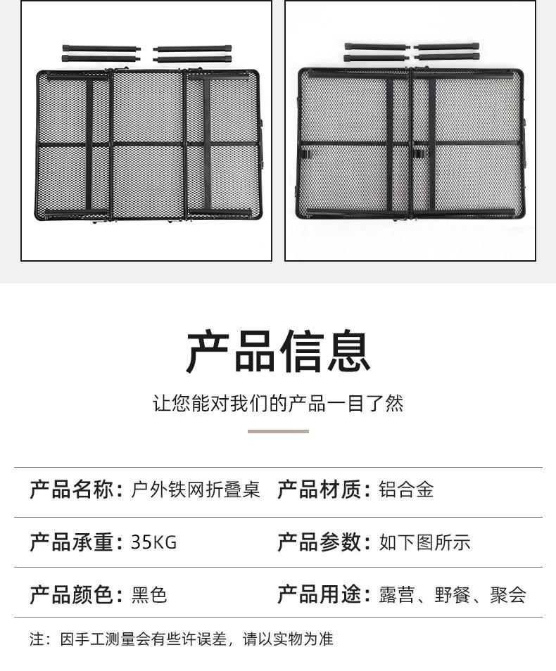 Mesa dobrável ao ar livre Mesa de piquenique portátil Mesa de acampamento Leve Liga de alumínio Piquenique portátil Rack de armazenamento de mesa de malha de ferro