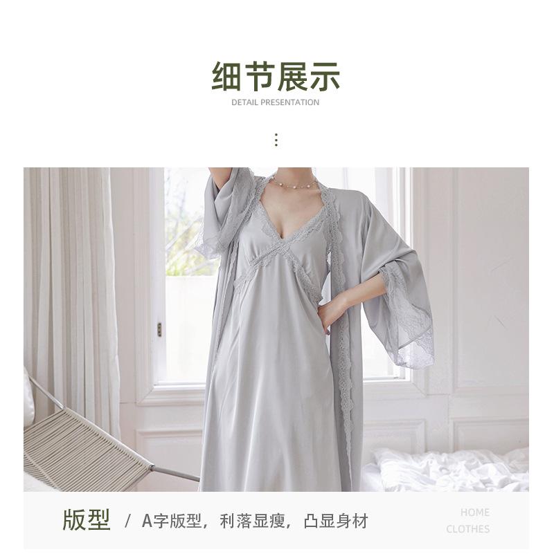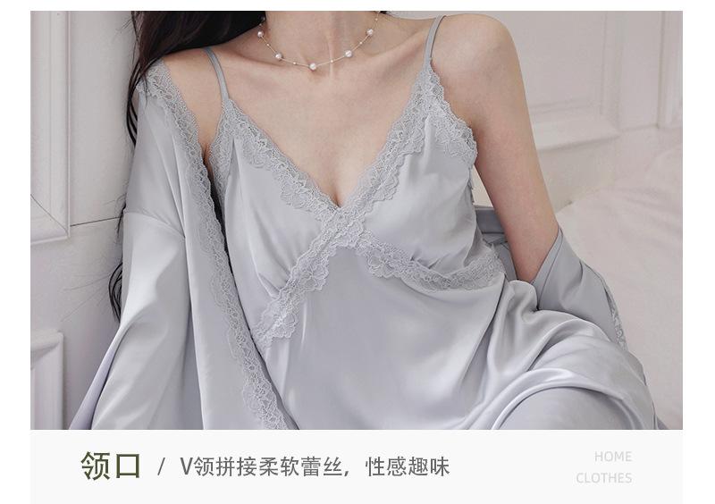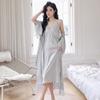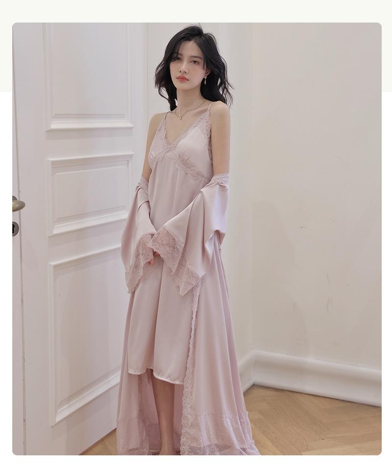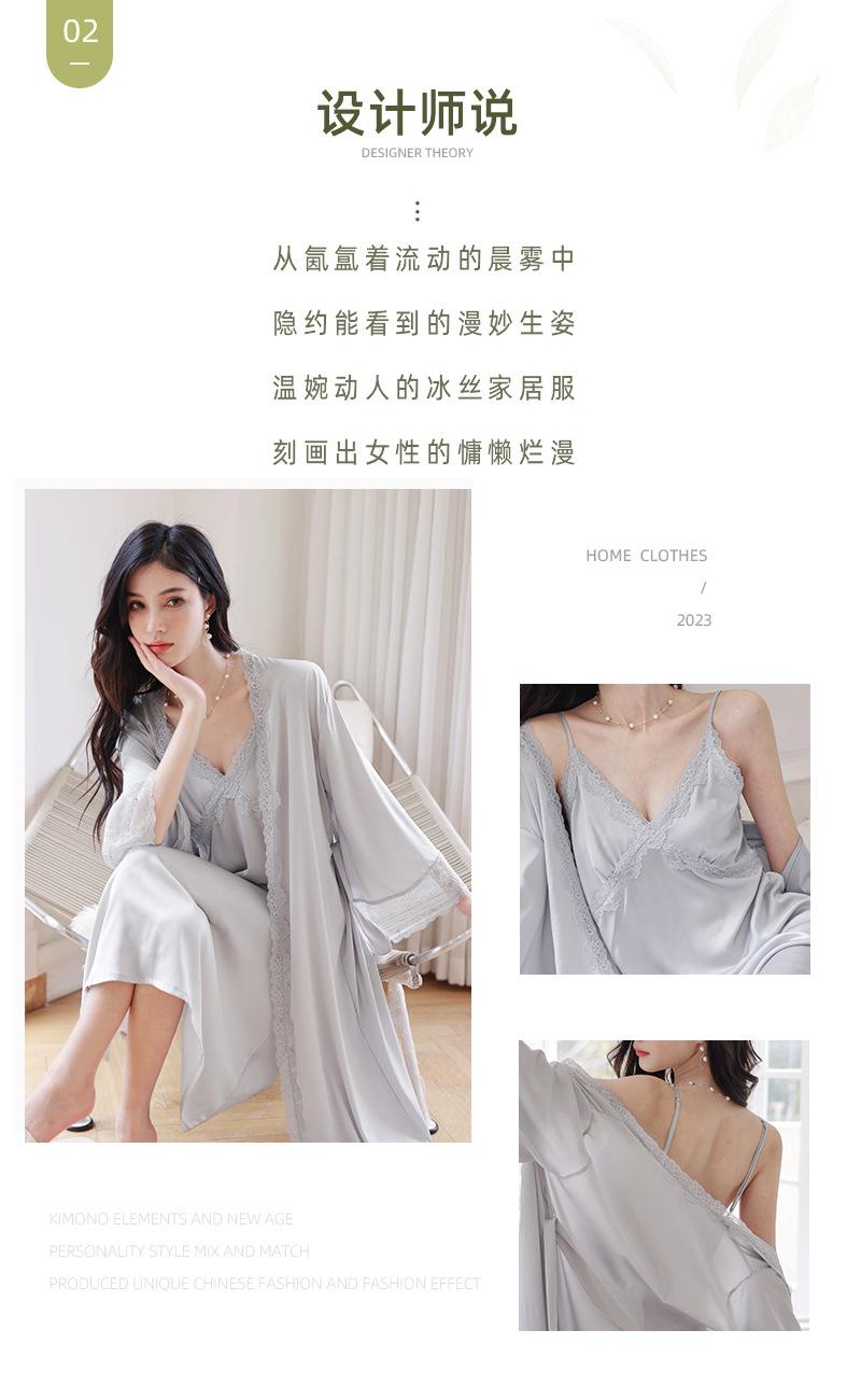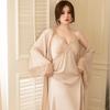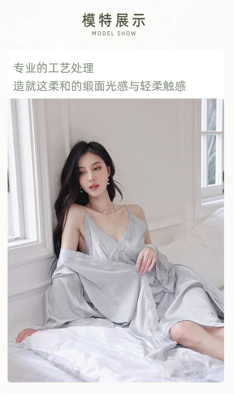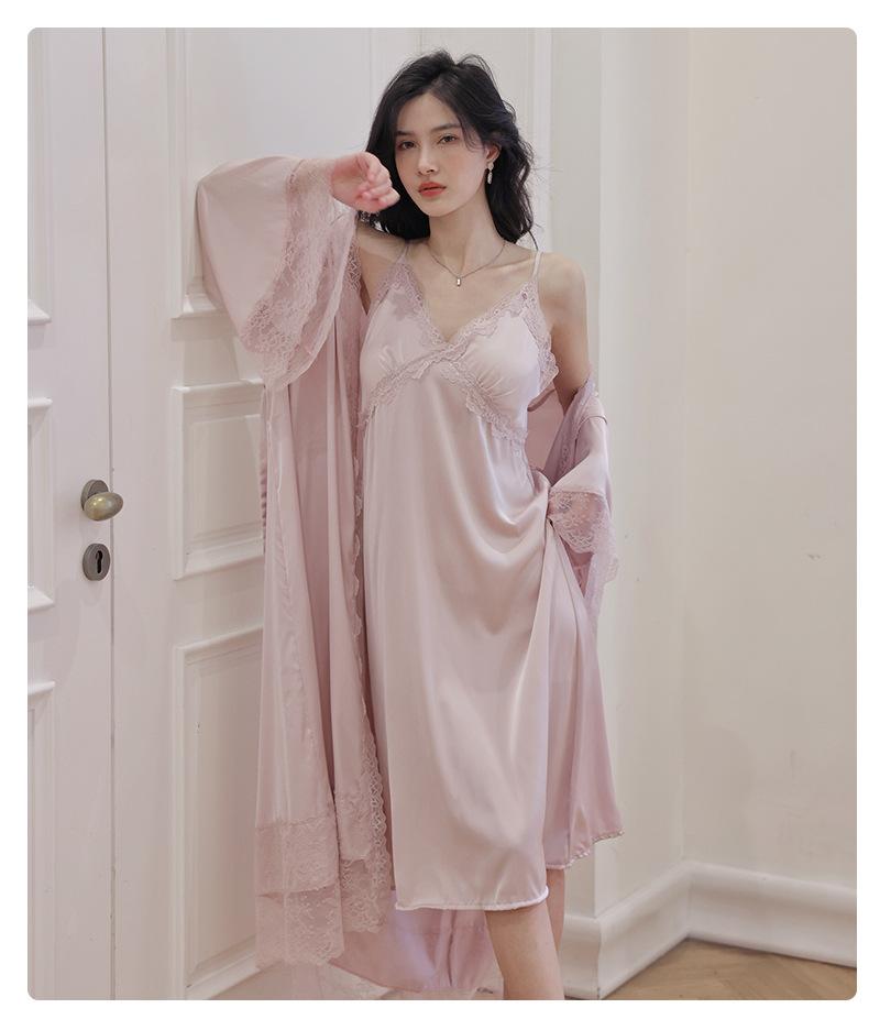 Pijama de seda de gelo sexy feminino primavera e outono novo estilo francês estilingue camisola camisola laço estilo corte de renda roupas para casa