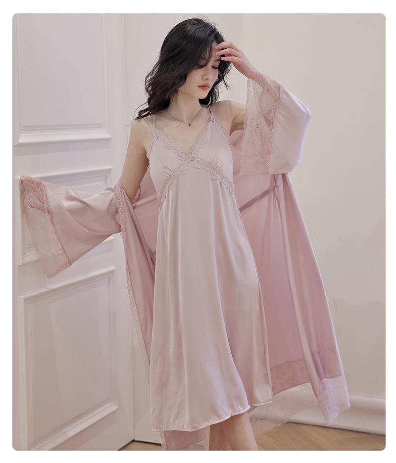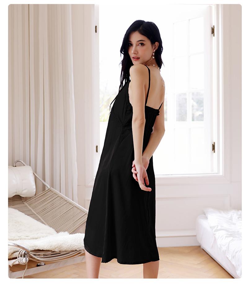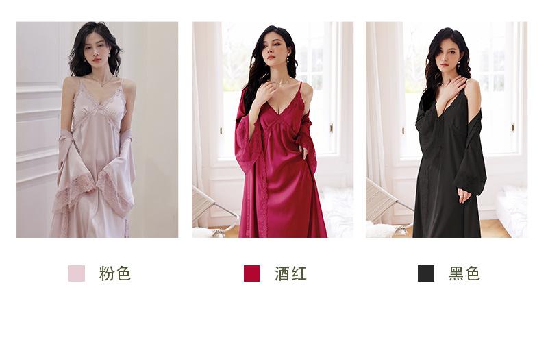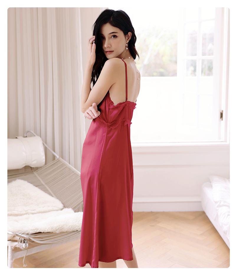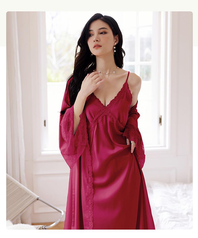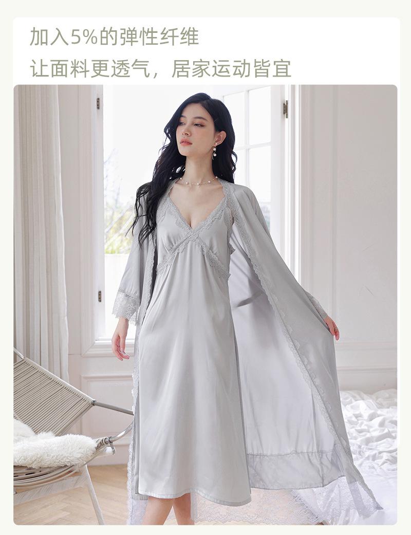Pijama de seda de gelo sexy feminino primavera e outono novo estilo francês estilingue camisola camisola laço estilo corte de renda roupas para casa