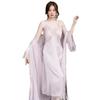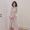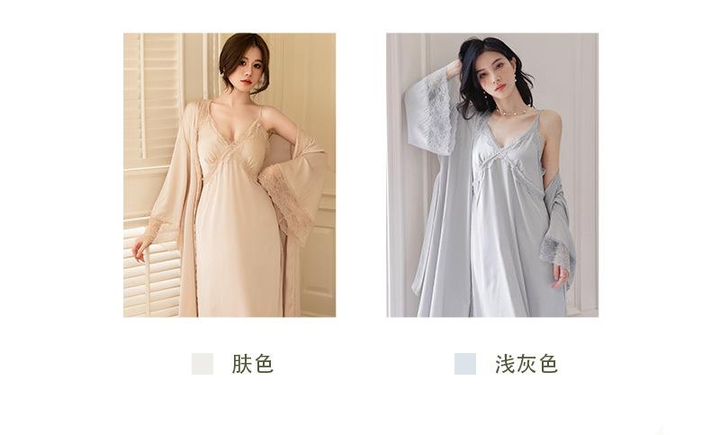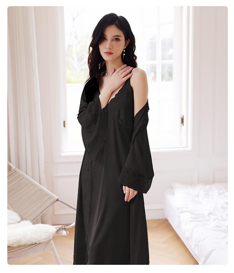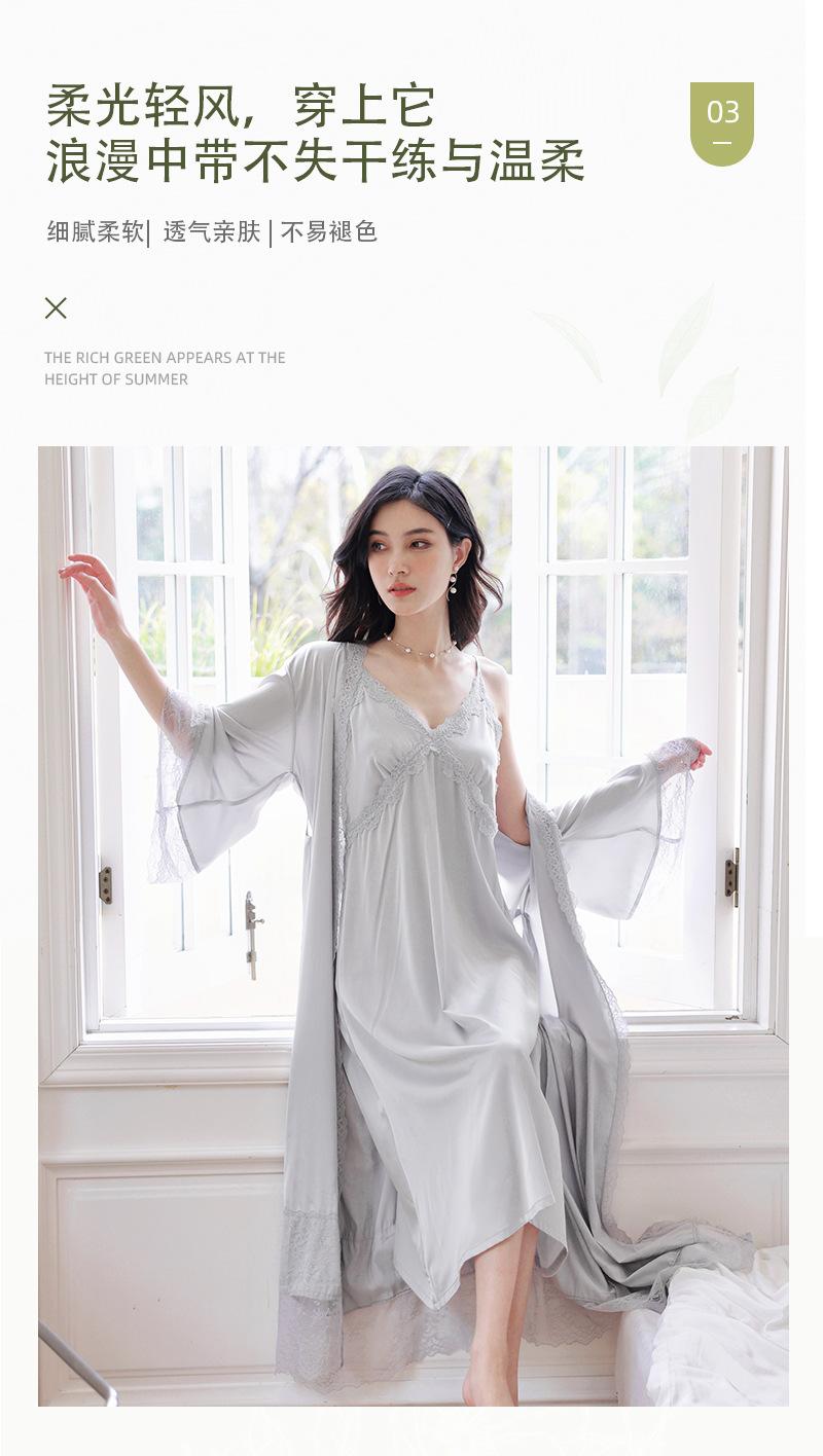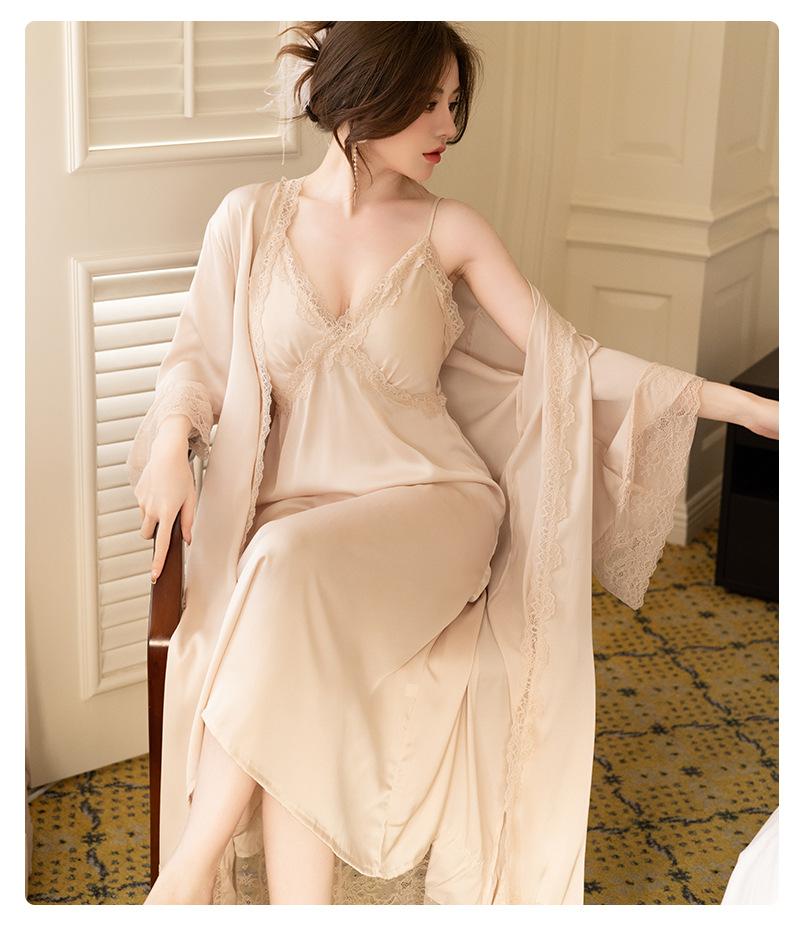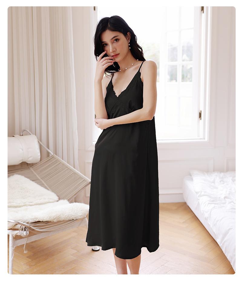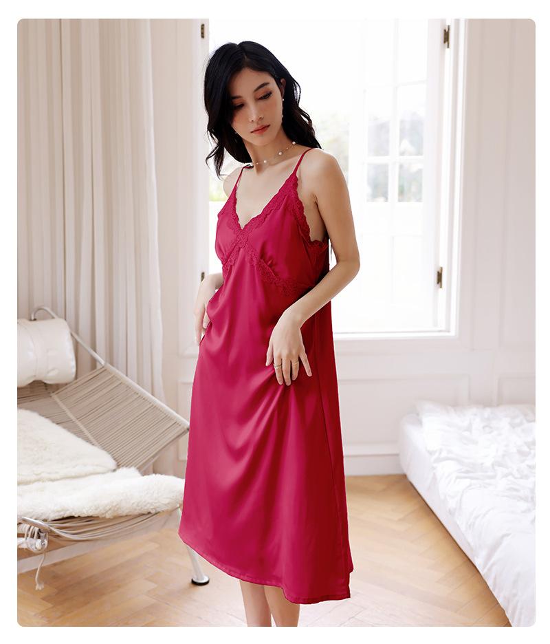 Pijama de seda de gelo sexy feminino primavera e outono novo estilo francês estilingue camisola camisola laço estilo corte de renda roupas para casa