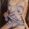 Pijamas Femininos Ice Silk Sexy Summer Sling Shorts Estilo Coreano Conjunto de Três Peças com Almofada no Peito Pijama de Imitação de Seda Pure Attraction