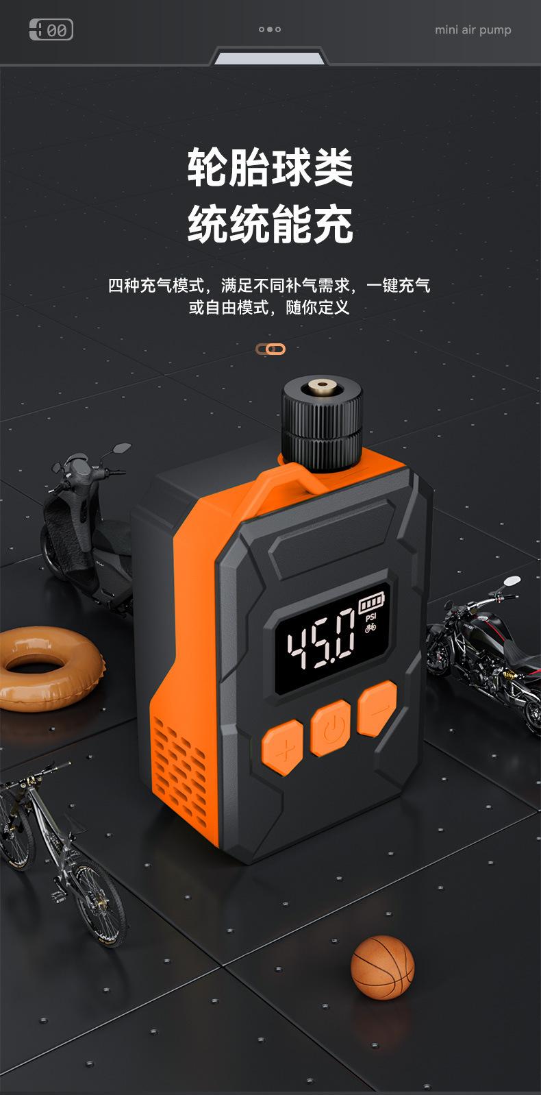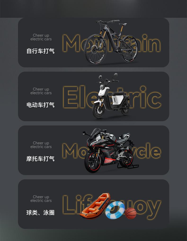 [Exibição da unidade]: Três modos de inflação (bicicleta, motocicleta, bola)
