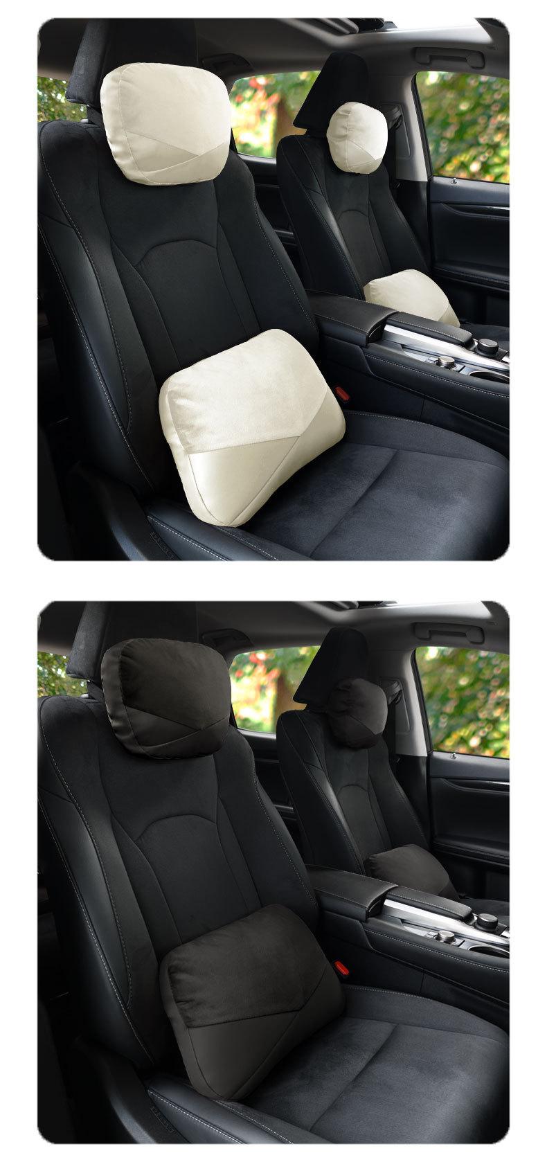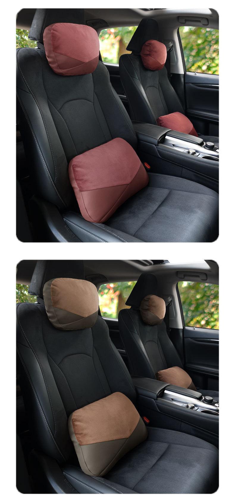 【Nome do produto】: Apoio de cabeça e apoio lombar em couro de flanela