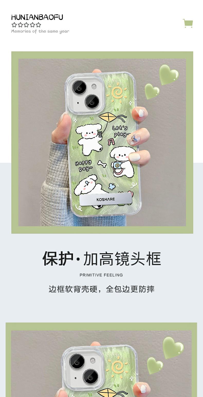 Para Huawei Pura70pro Capa de Telefone vivos17 Verão Filhote de Cachorro Stand Oppo Fio De Penas Xiaomi 14 Bonito
