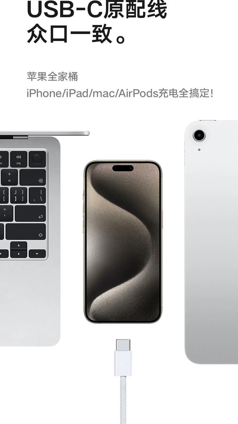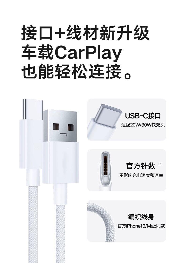 Cabo de Dados Trançado USB-C para Celular Apple iPhone 15pro Cabo de Carregamento para Carro Cabo de Dados Tipo-C