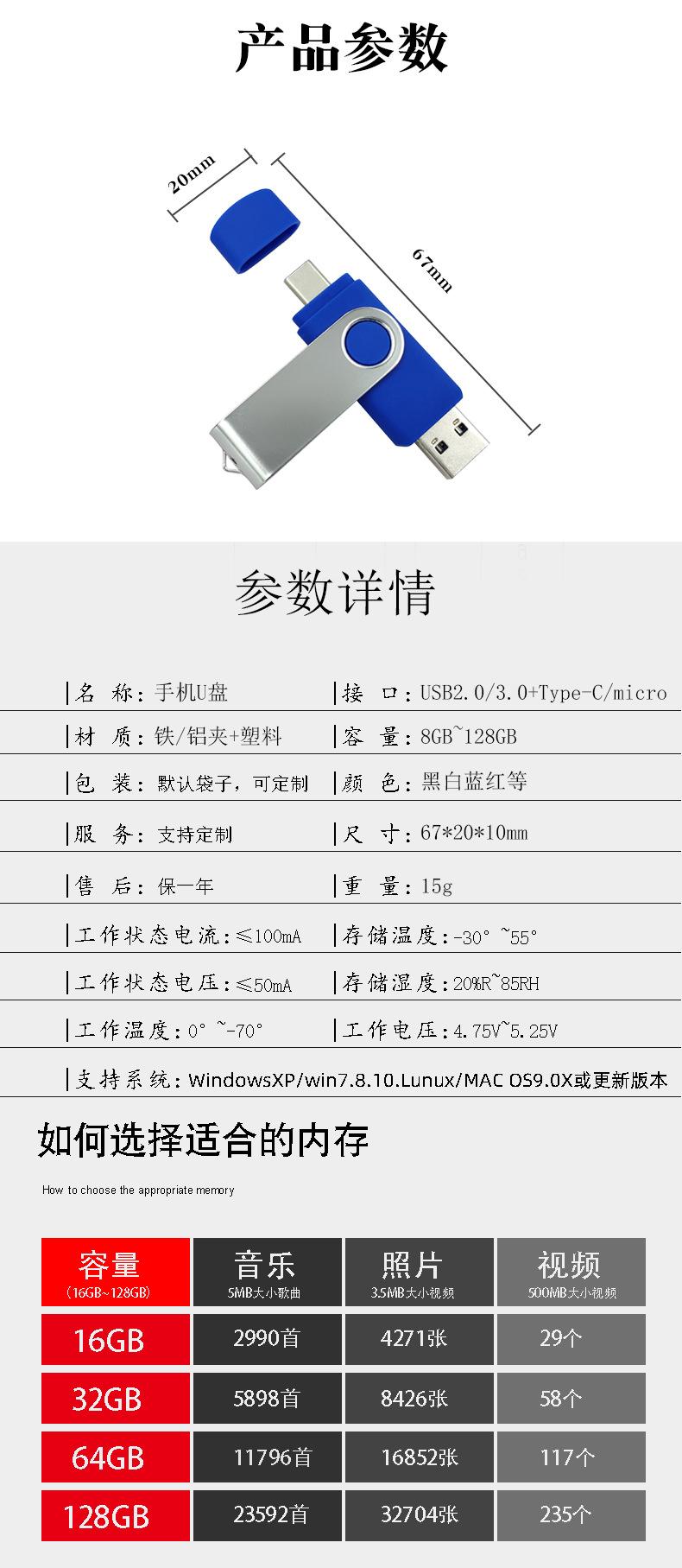 Disco U do telefone móvel 8g disco U de dupla finalidade 32g letras marca registrada Tipo-C USB 128g artefato de expansão 64g