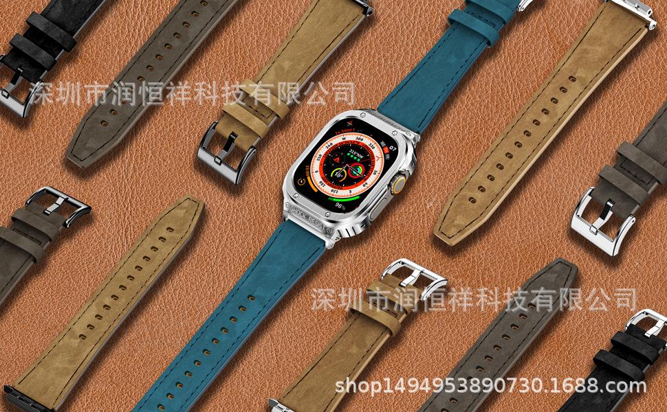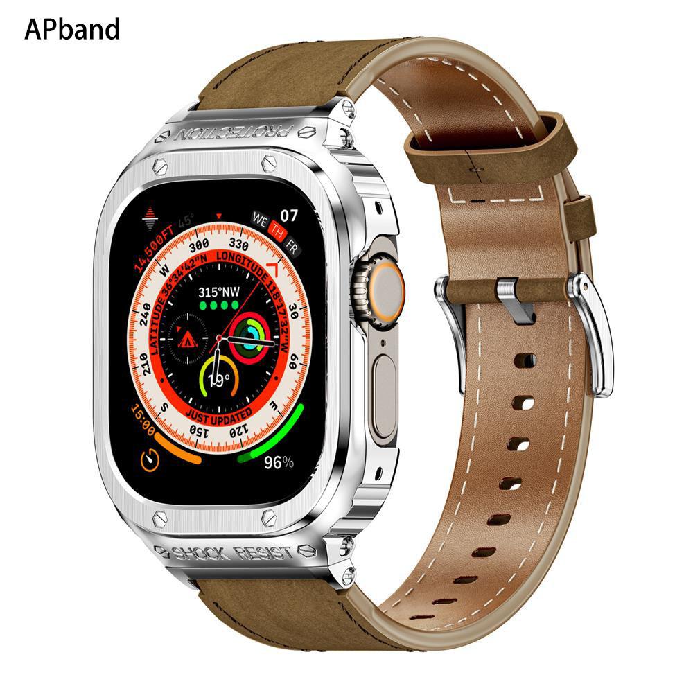 Compre Pulseira de maçã para applewatch pulseira iwatch s9 caixa de metal cinto de couro genuíno pulseira de relógio inteligente no atacado no Joom.pro