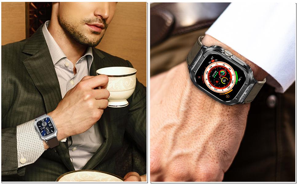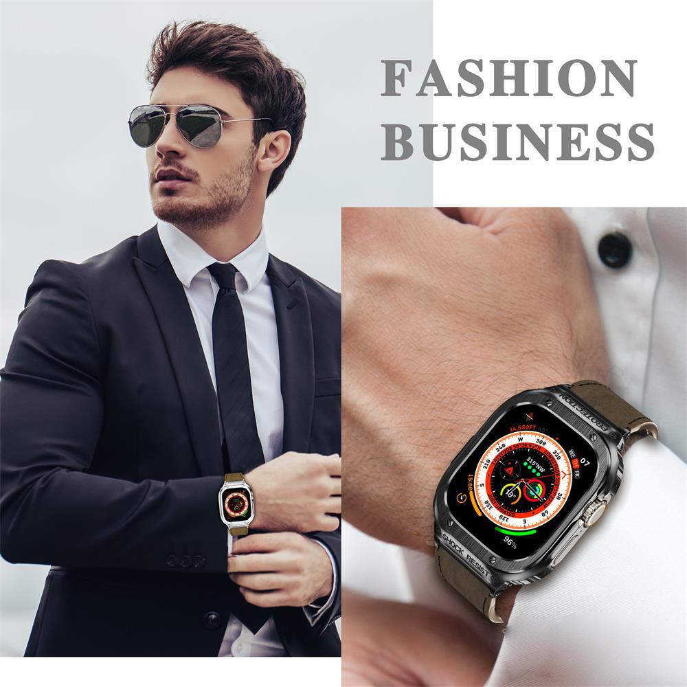 Pulseira de maçã para applewatch pulseira iwatch s9 caixa de metal cinto de couro genuíno pulseira de relógio inteligente