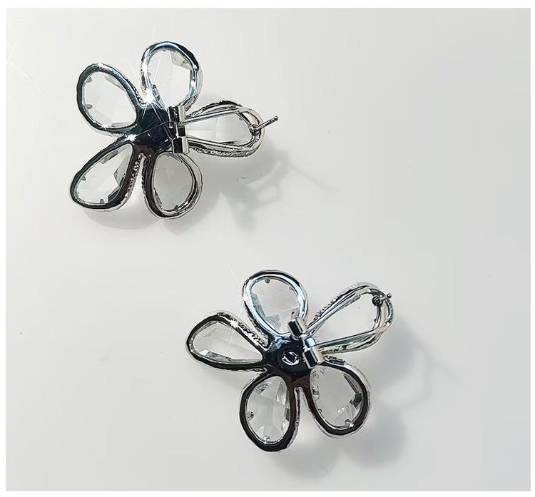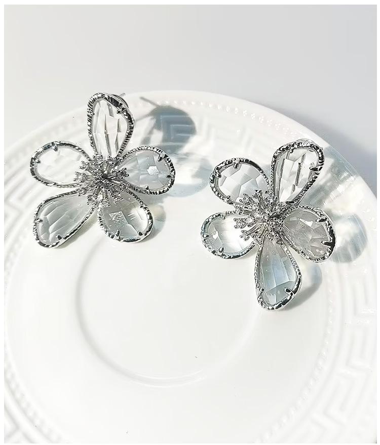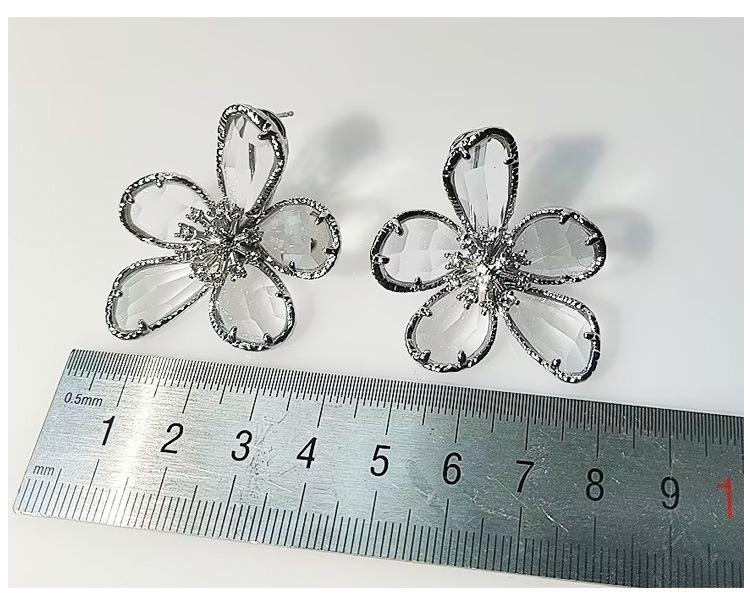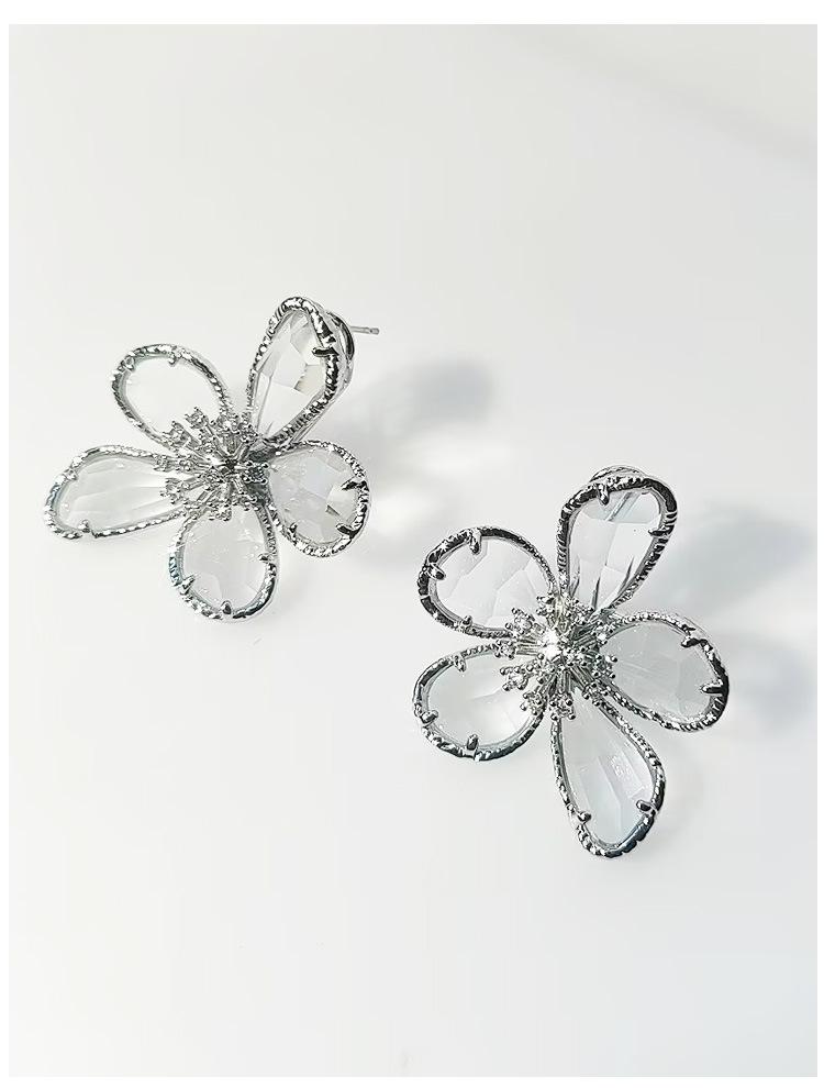 Brincos de Luxo Estilo Europeu e Americano Gema Multifacetada Transparente Brincos de Flor para Mulheres