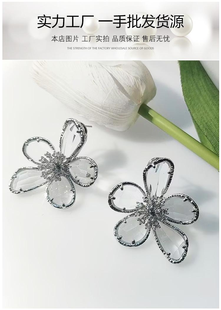 Compre Brincos de Luxo Estilo Europeu e Americano Gema Multifacetada Transparente Brincos de Flor para Mulheres no atacado no Joom.pro