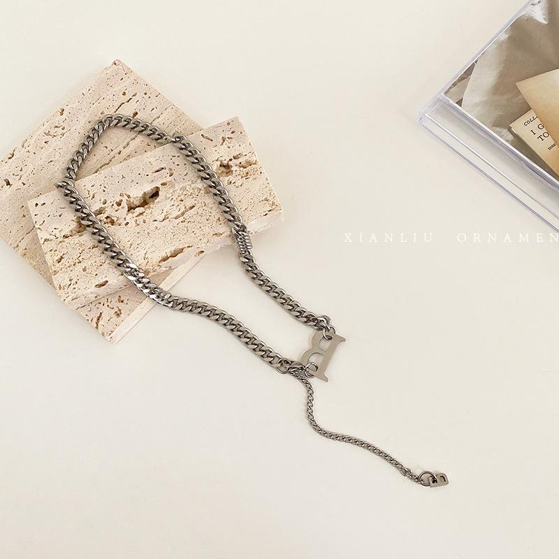 Design sense B colar de letra feminino ins hip hop colar leve luxo nicho titânio aço clavícula corrente acessórios decorativos venda quente