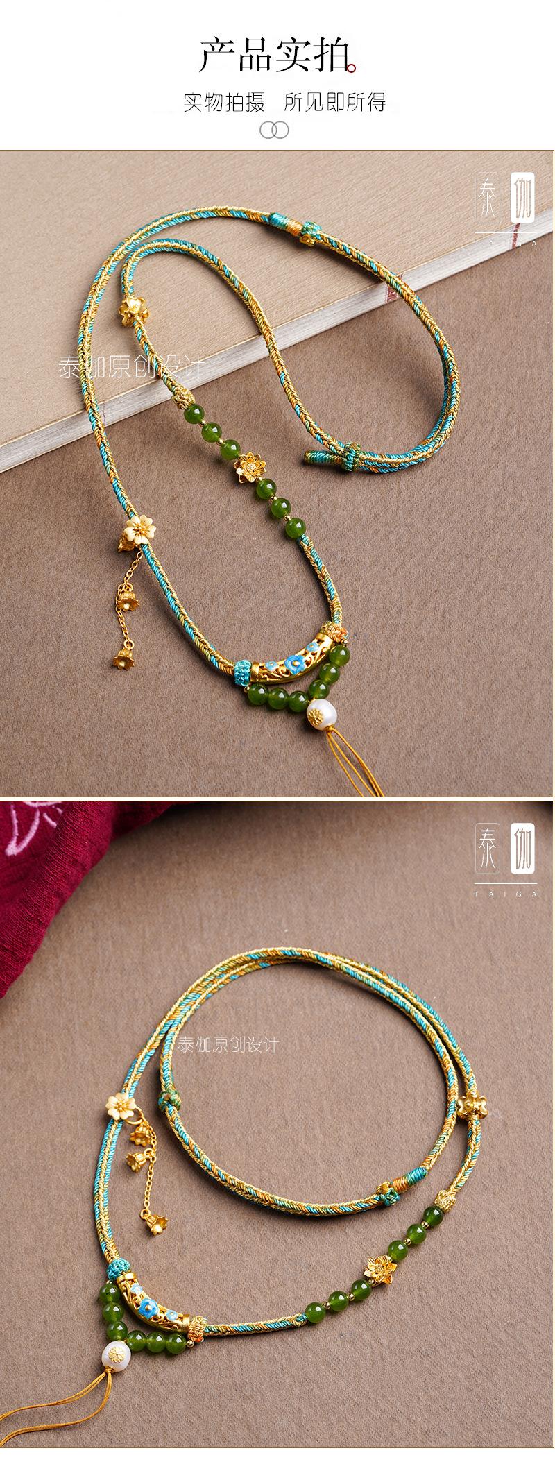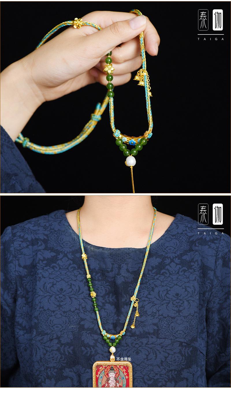 Novo estilo chinês estilo nacional estilo chinês jade jade pérola Thangkawen jogar alta densidade feito à mão fino-tecido pingente corda TG270