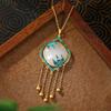 Colar de pingente quadrado de folha de bambu pintado de esmalte estilo chinês imitação de pingente de jade hetian Corrente de clavícula de fada banhada a ouro 24k