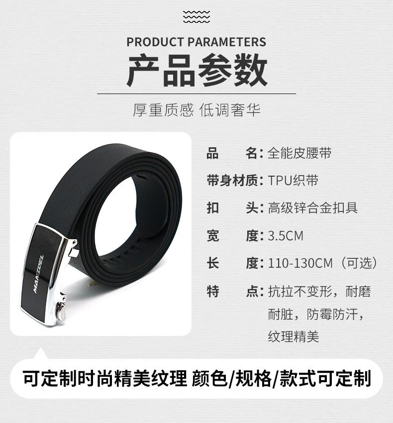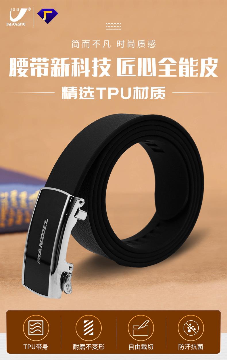 Cinto Masculino de Negócios de TPU Fabricante Cinto Tamanho Grande Anti-Suor Antibacteriano Fivela de Liga Tracionável Fivela Automática Cinto Masculino