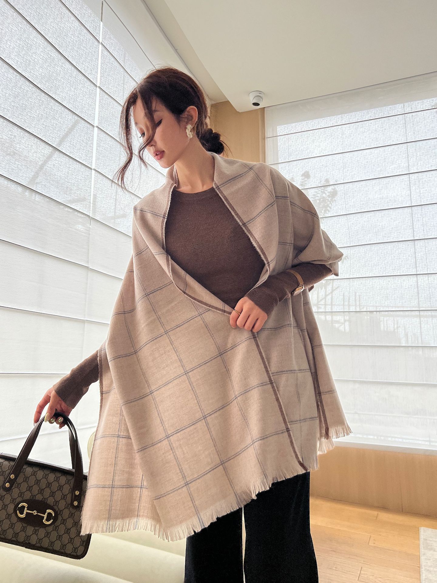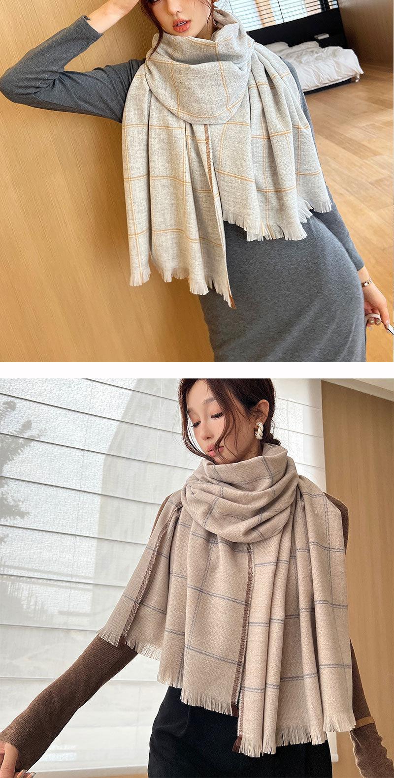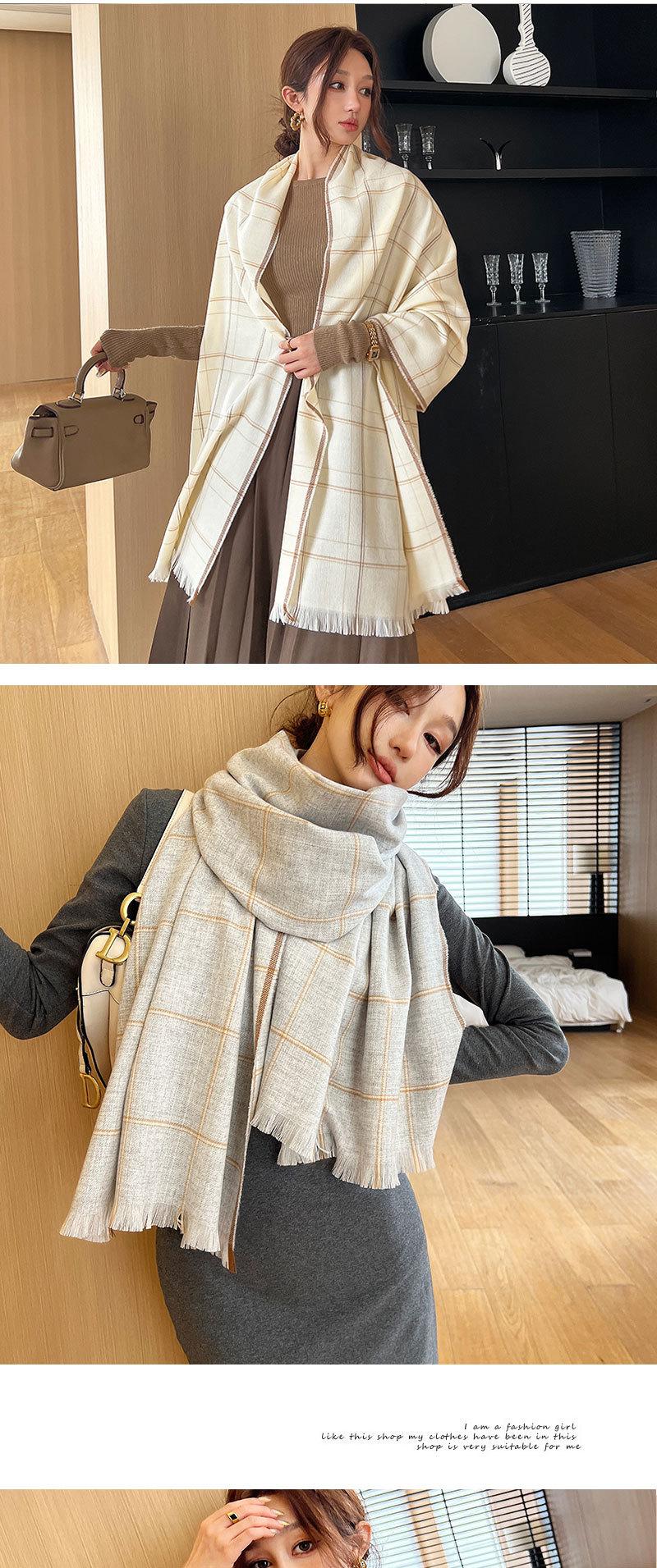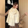 Outono e inverno cachecol das mulheres novo xale de lã espessa simples para todos os jogos cachecol feminino cor clara grande lenço jacquard xadrez