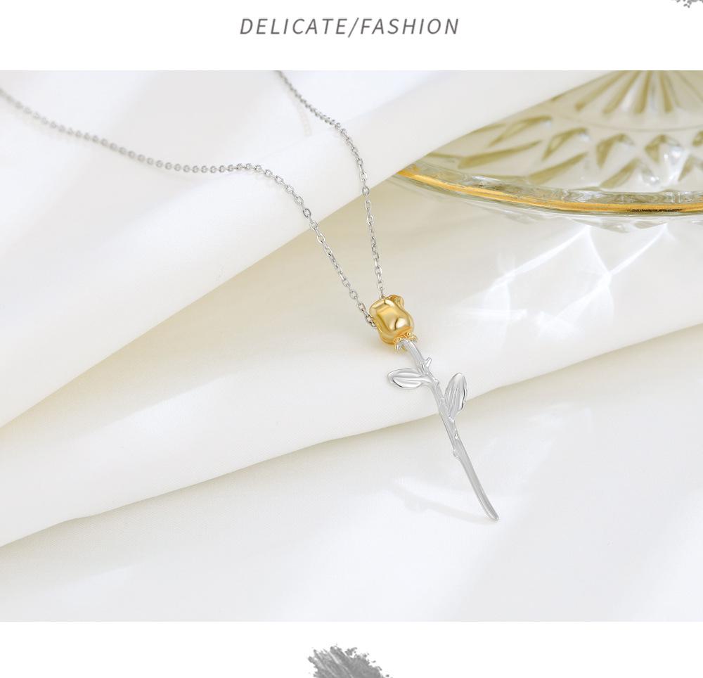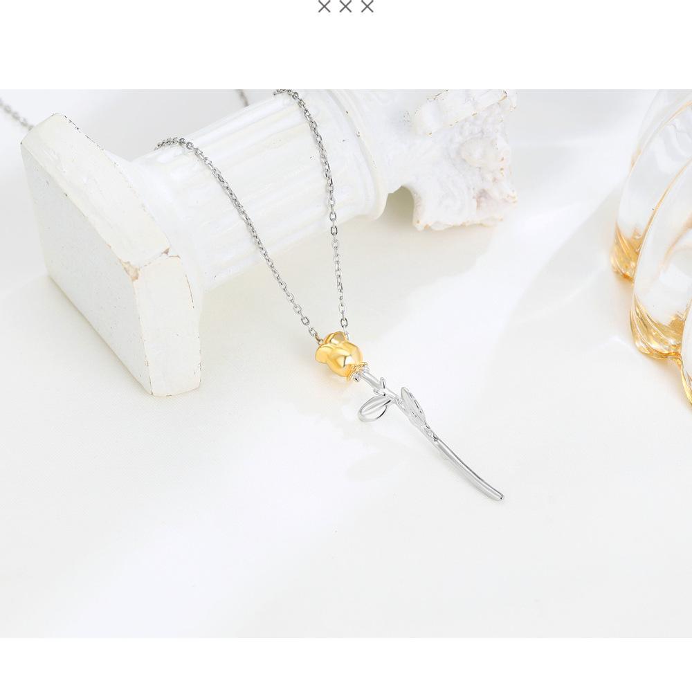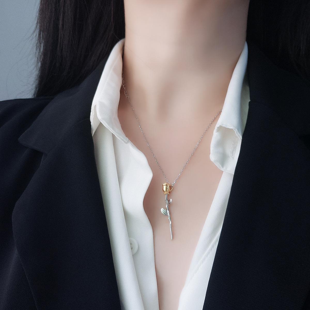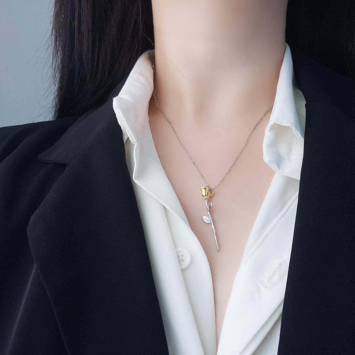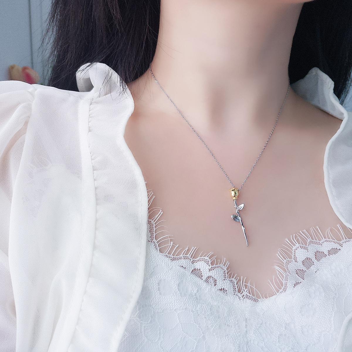 Compre S925 Sterling Silver One Rose Colar Temperamento All-match Moda Jóias Flor Clavícula Cadeia Simples Personalidade Acessórios no atacado no Joom.pro