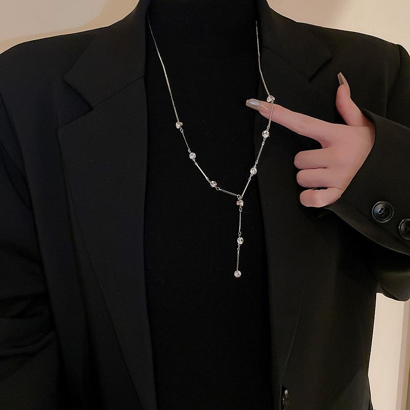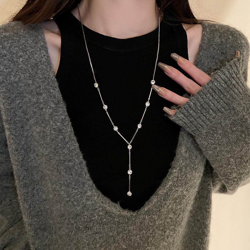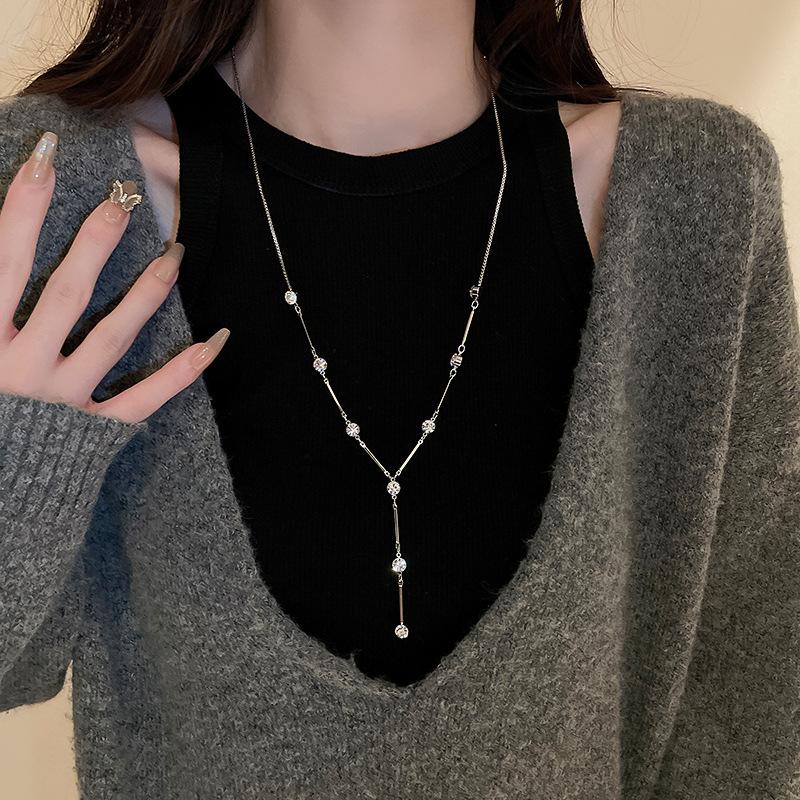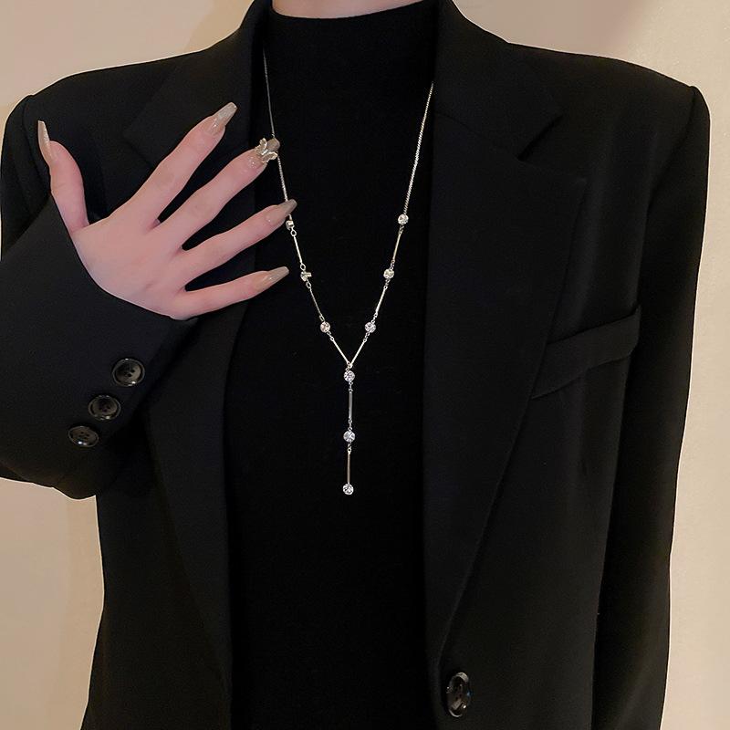 Colar longo de suéter em forma de Y embutido em diamante de alta qualidade europeu e americano temperamento de nicho de luxo leve Moda Net colar de clavícula vermelha para mulheres