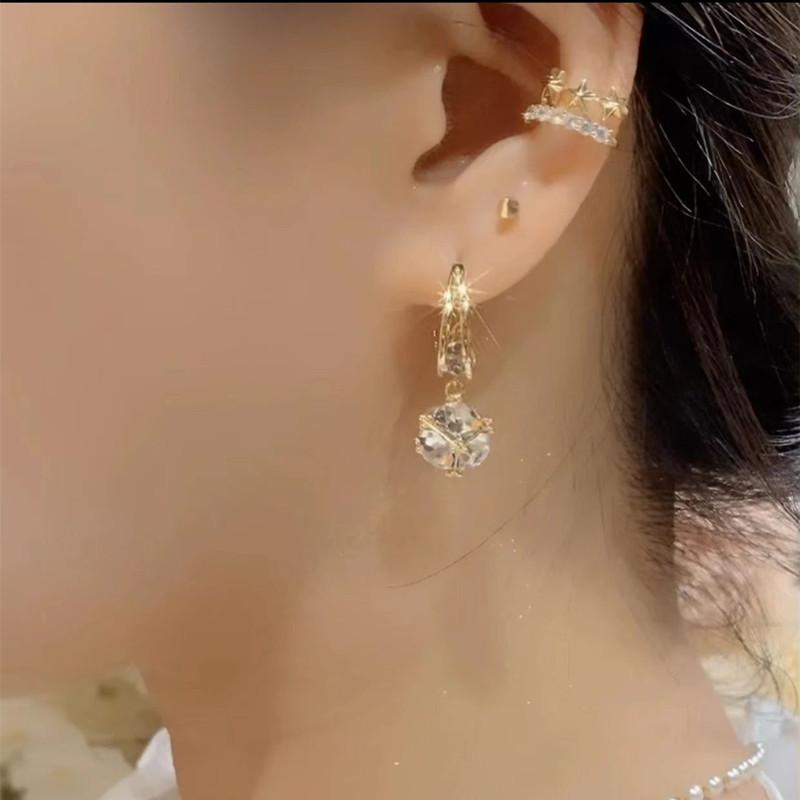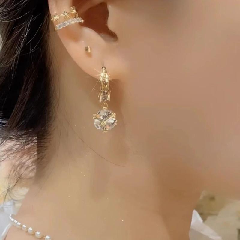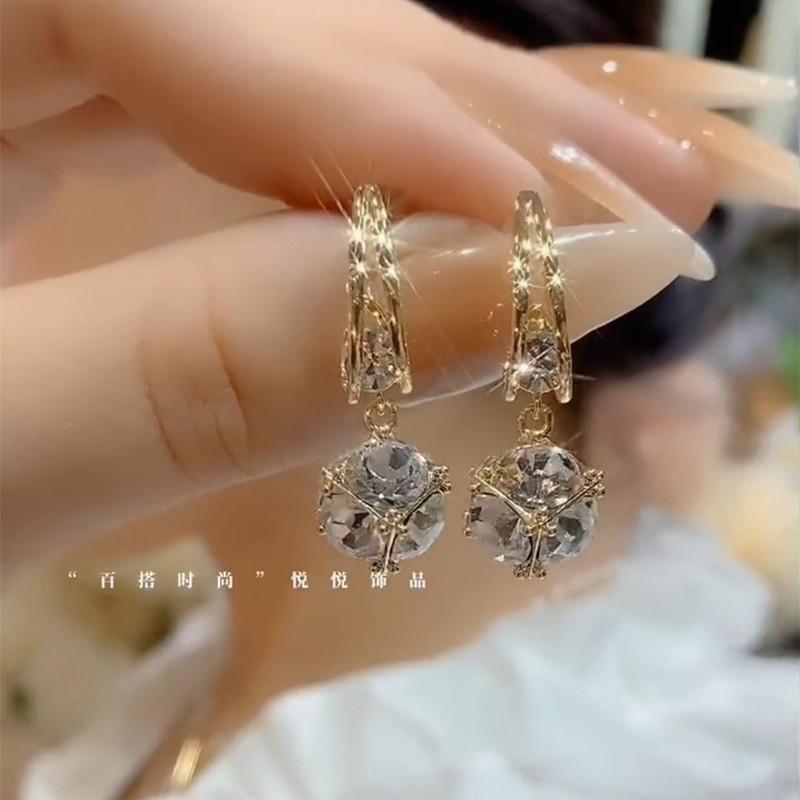 Compre Requintado Super Flash Zircon Diamond Ball Ear Buckle Full Diamond Light Luxo High-end Brincos de orelha Elegante para todos os jogos Brincos simples de nicho femininos no atacado no Joom.pro