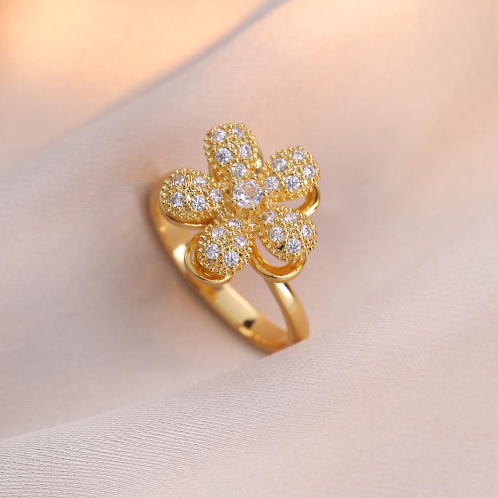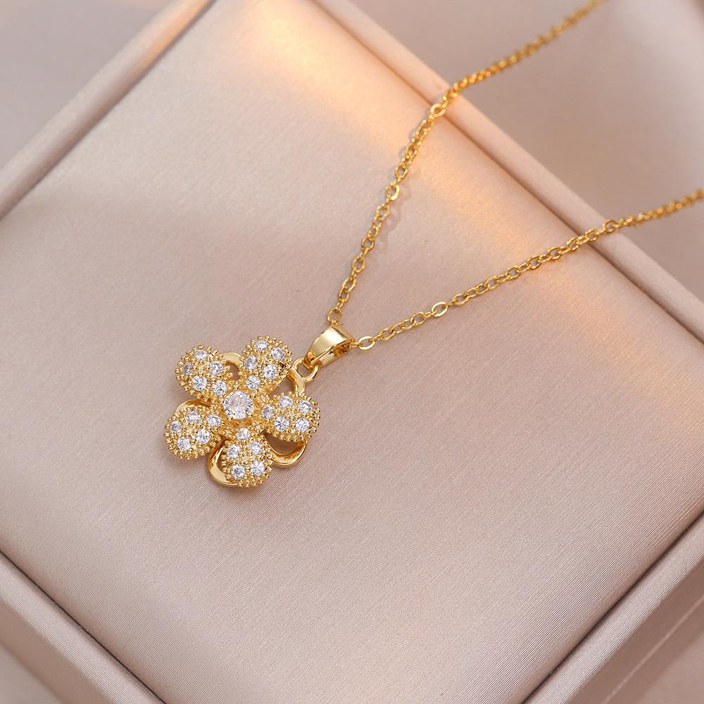 Colar para Mulheres, Celebridade da Internet Transfronteiriça Camada Dupla Anel de Flor de Zircônia Cravejado de Diamantes, Corrente Clavicular de Aço Titânio, Joias de Colar da Moda para Mulheres