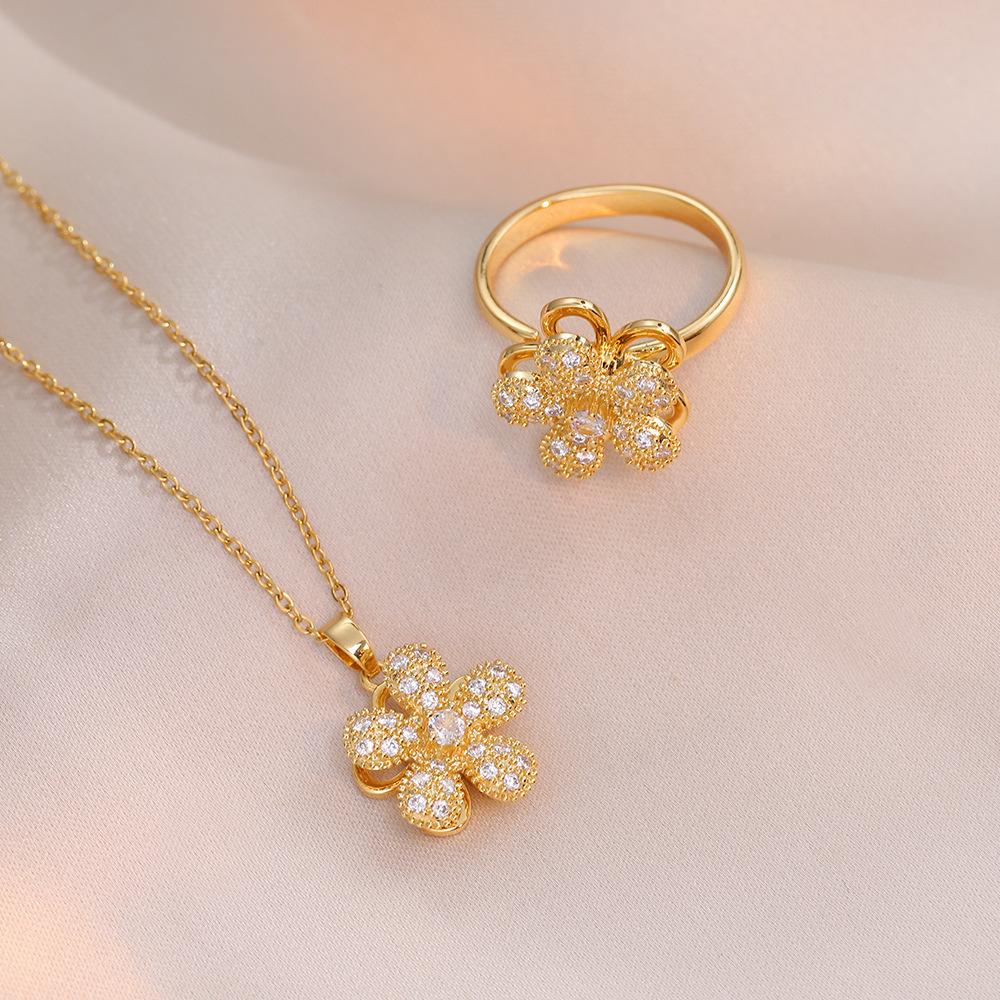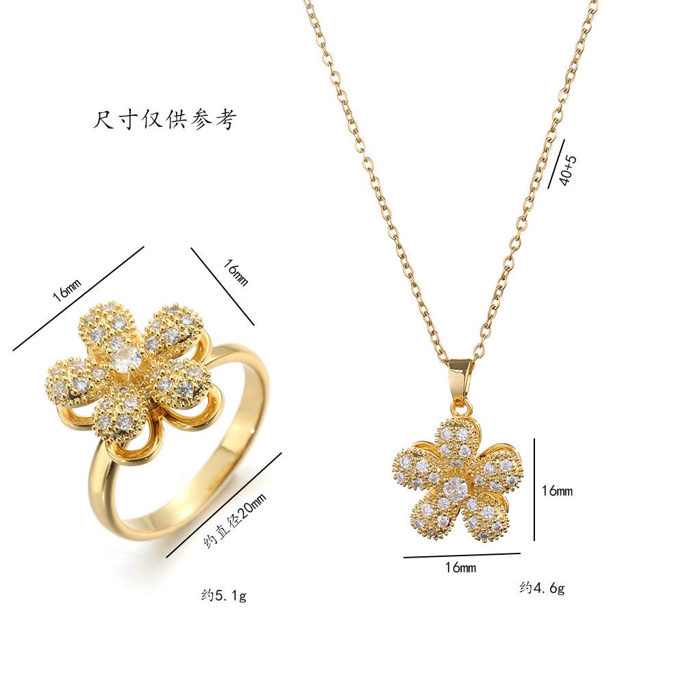 X0756 flower zircon necklace, J0252 flower zircon ring, Steel color cross chain