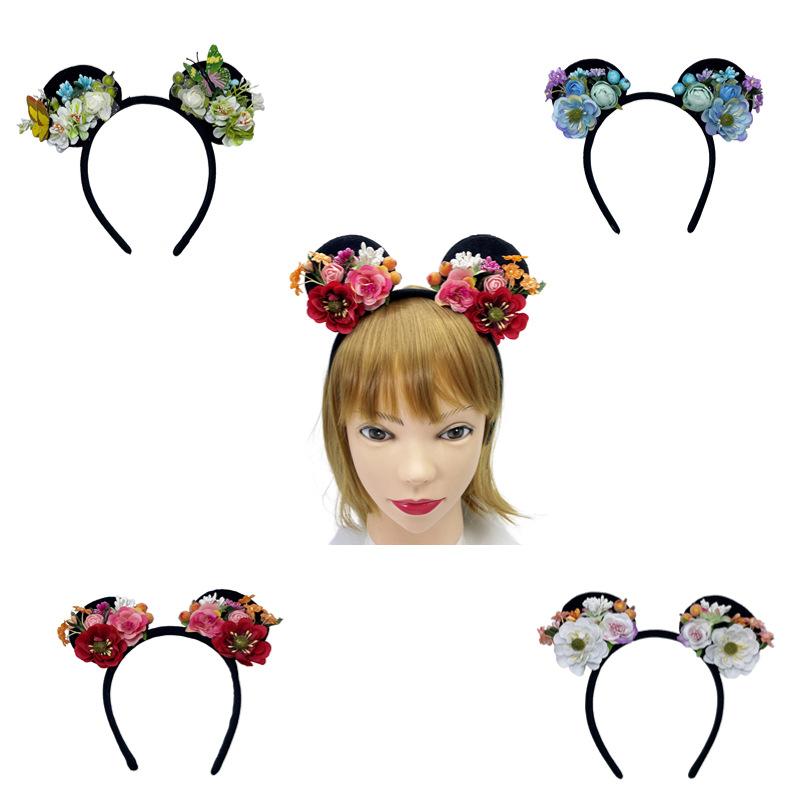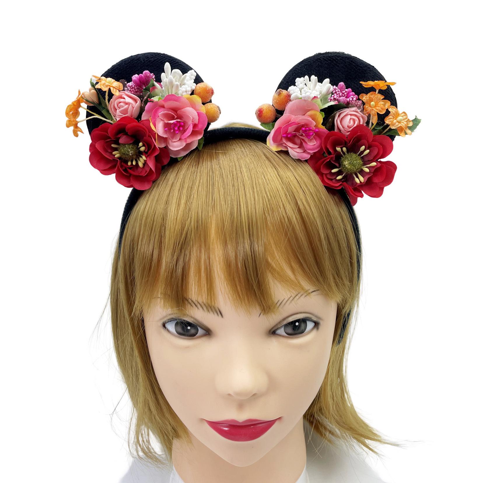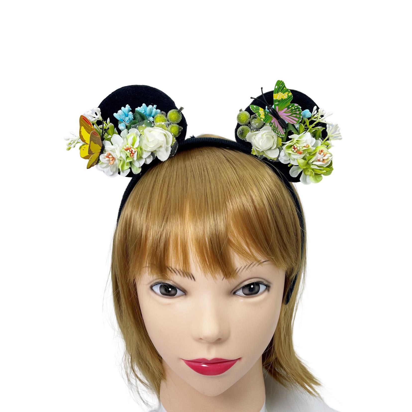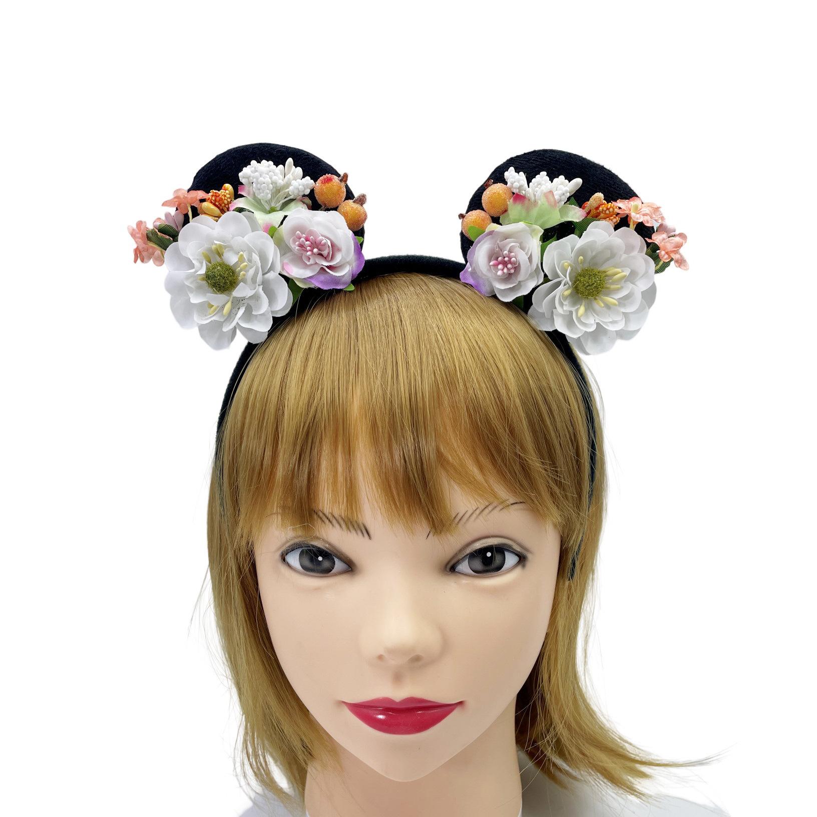 Primavera cênica parque de diversões crianças mickey orelha headband bonito reunindo flor artificial headband cabeça de orelha de pelúcia