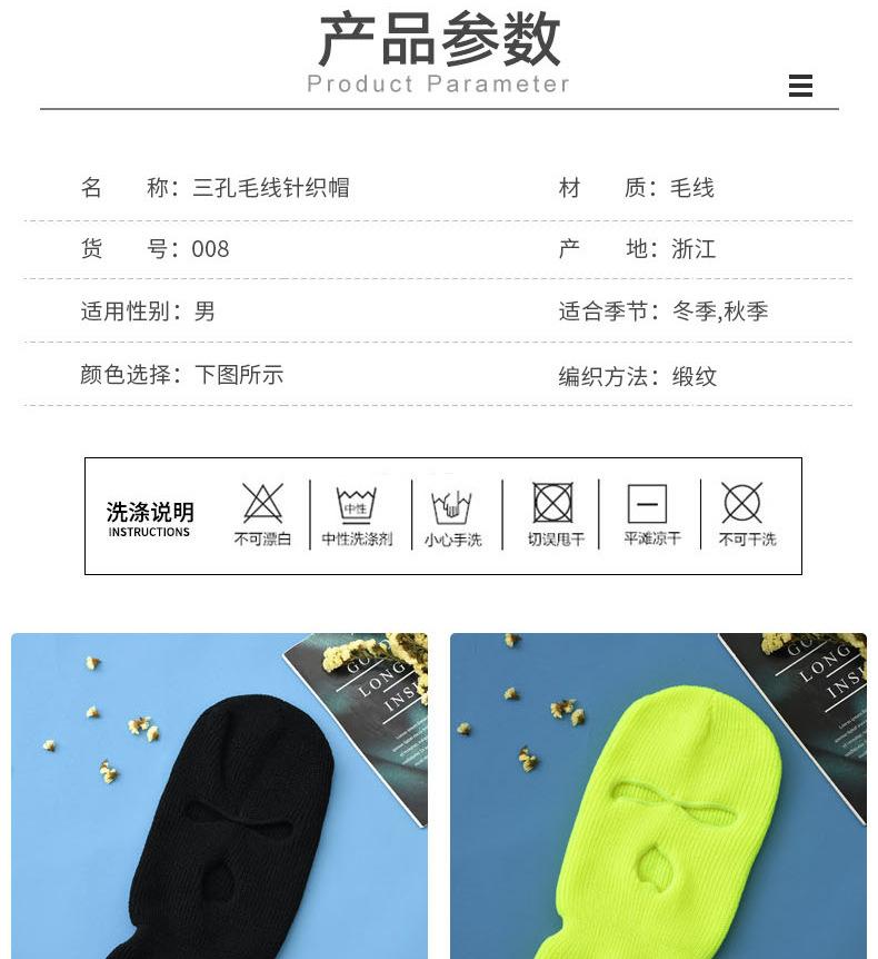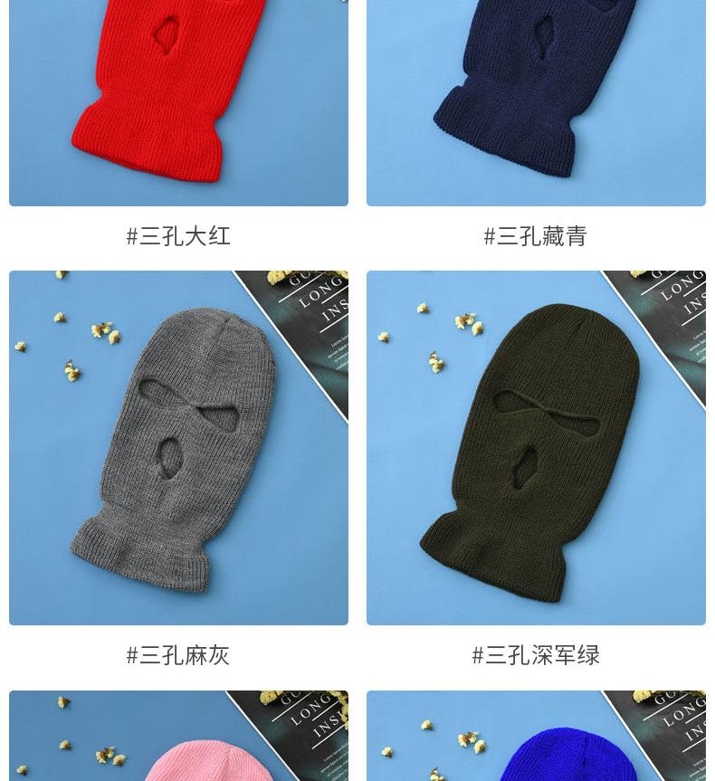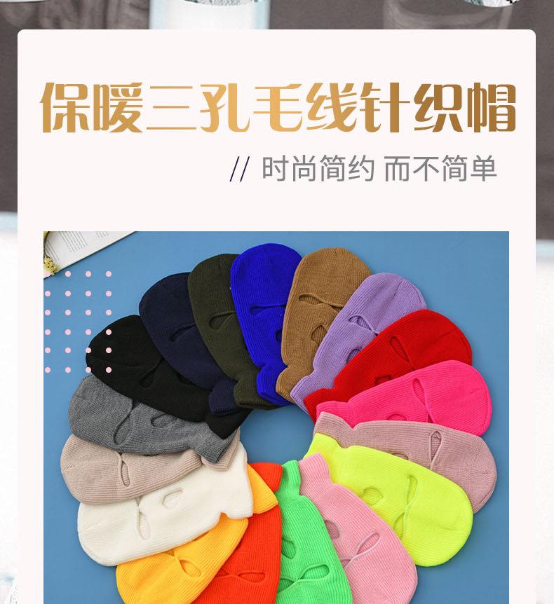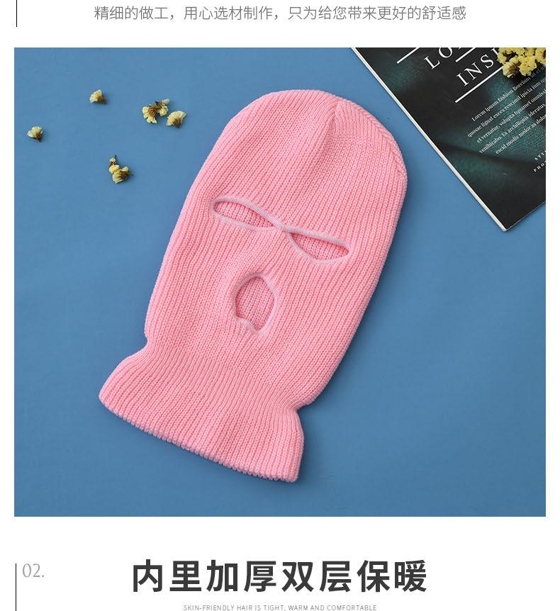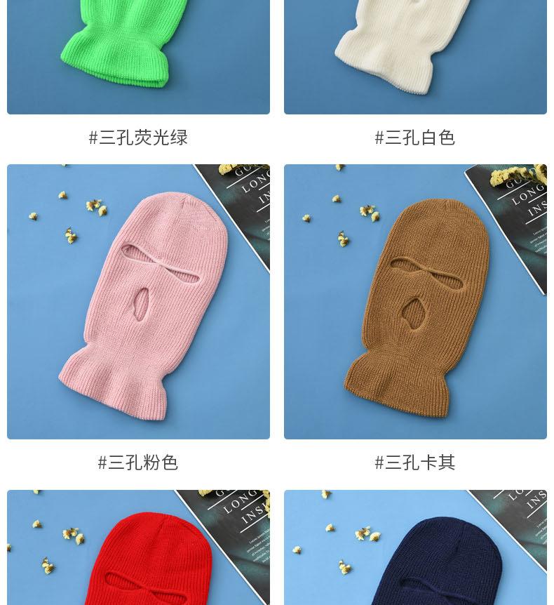Novo Outono e Inverno Agulha de Lingote Quente Máscara de Três Furos Ciclismo Baotou Exterior Cor Pura Lã Tricotada Chapéu em Estoque