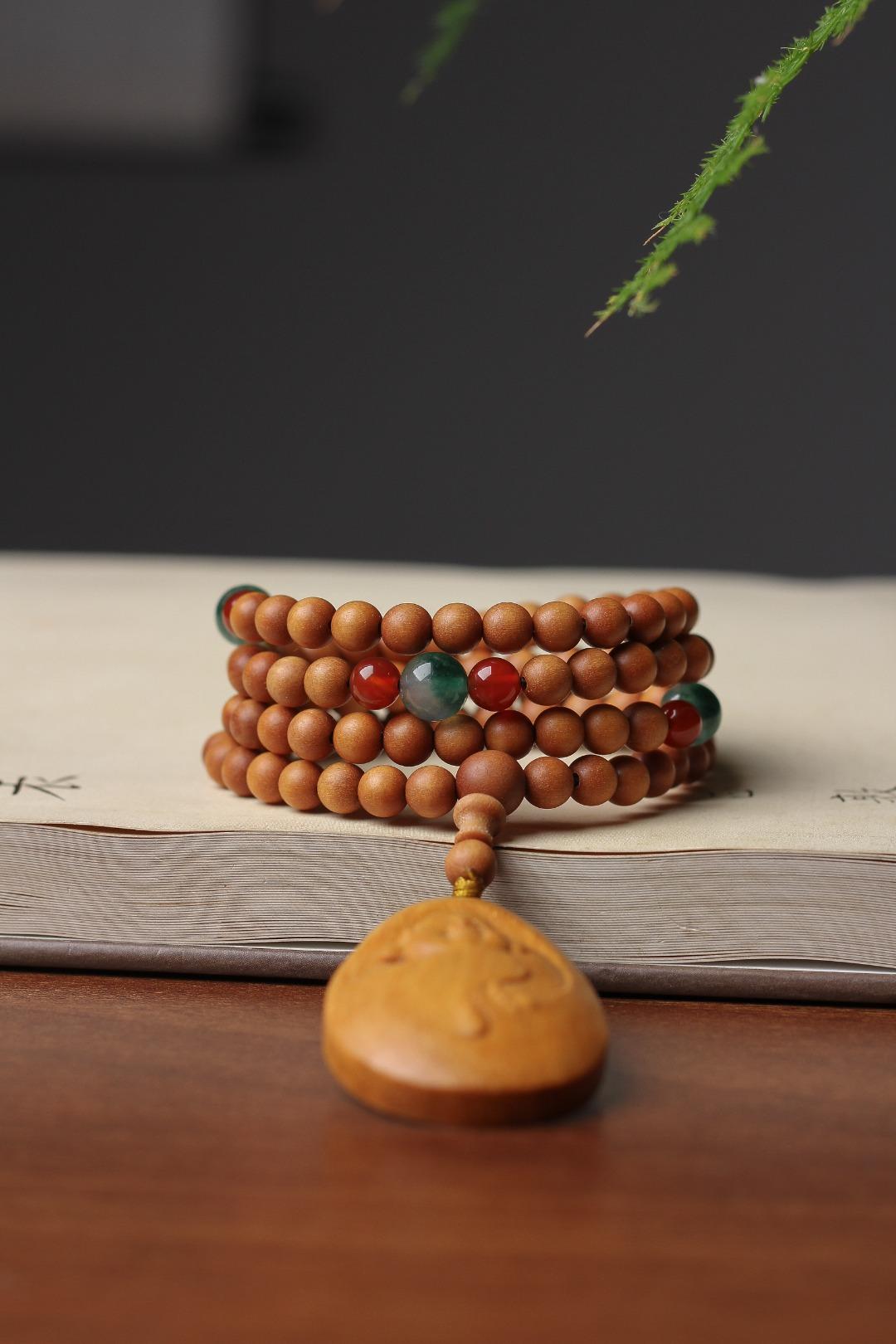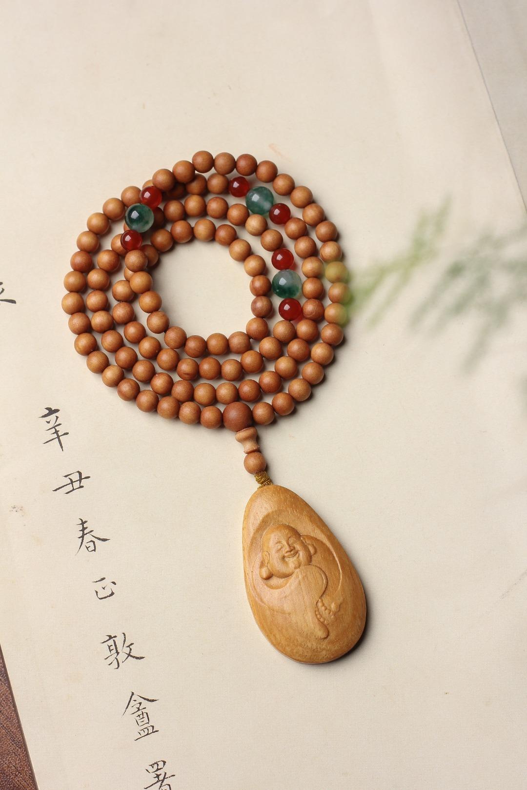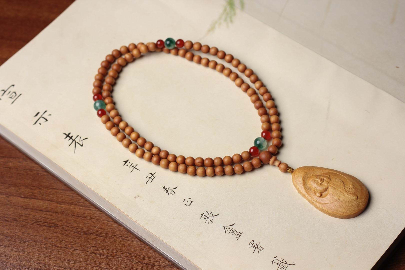 Sandalwood 0.6 multi-circle matching 4.0 Fengjiu brand, Guanyin pendant necklace [with luminous beads]]