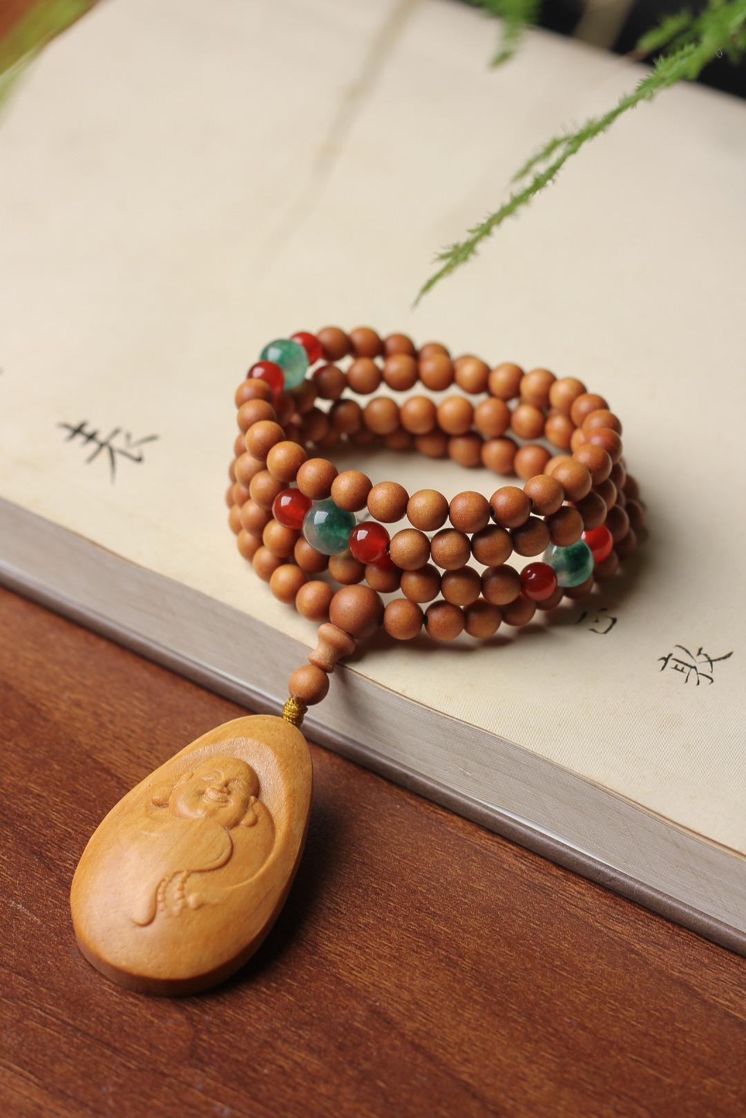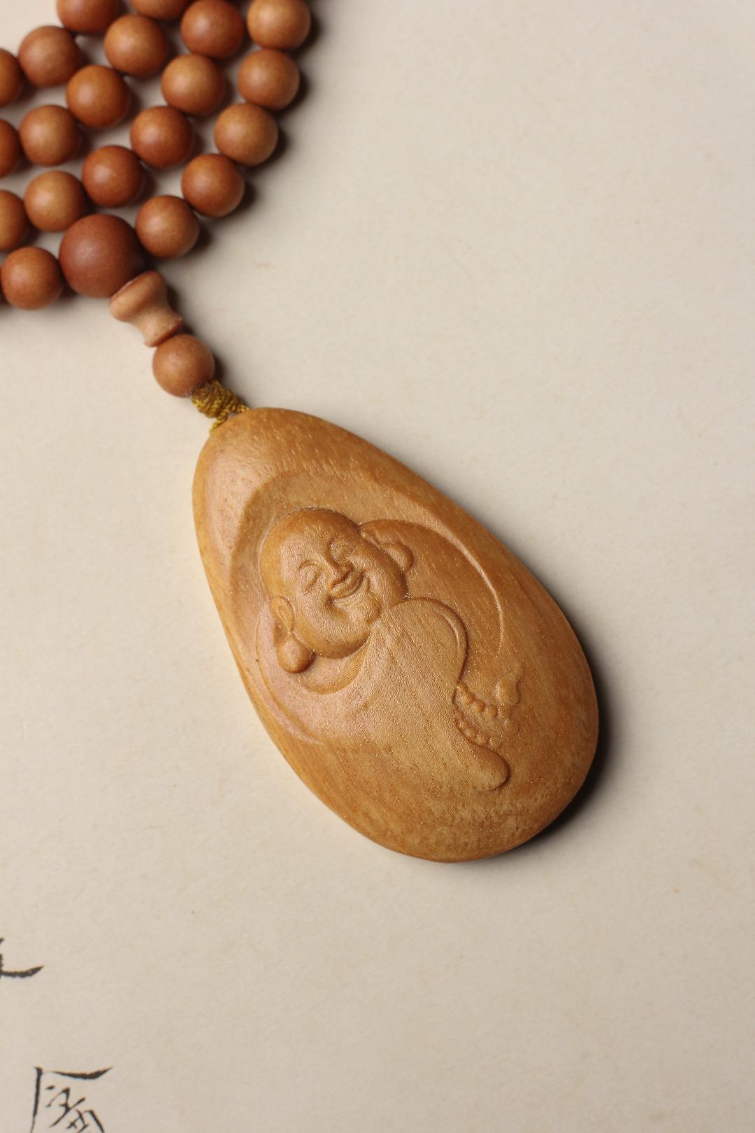 Pulseira de contas de Buda Zen Chinês DIY de madeira de sândalo 0,6 com pingente de Buda Maitreya e colar de rosário para homens e mulheres