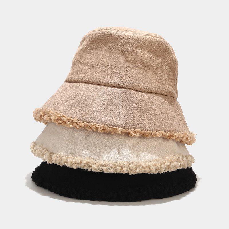 Chapéu feminino coreano inverno Novo grosso cordeiro velo pescador chapéu Japonês simples pequeno fresco frio bacia chapéu atacado