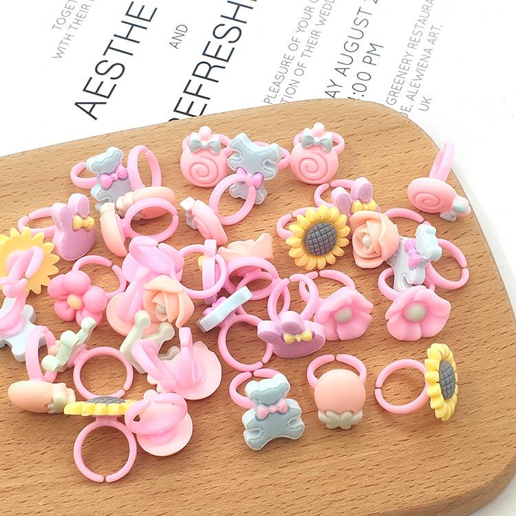 Estilo coreano das crianças dos desenhos animados anel de cor de doces pulseira bonito rosa menina jóias pequeno anel de presente