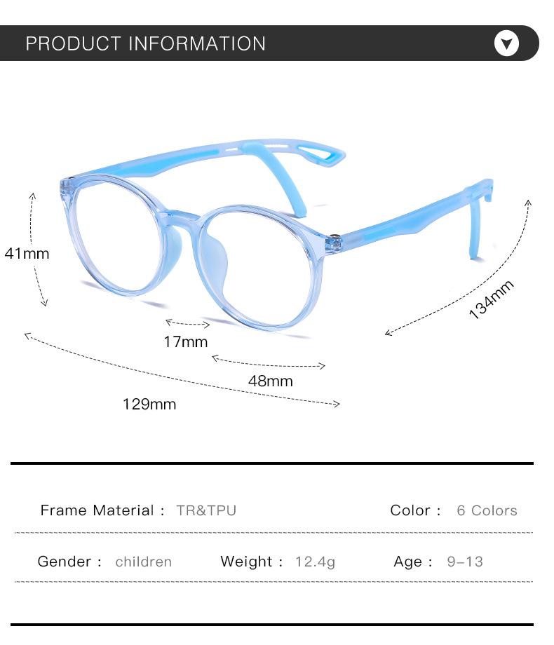 2025 Novo Armação de Óculos Infantil Tr90 Xadrez Hastes Ajustáveis Ultraleve Silicone Armação Redonda Grande Espelho Plano
