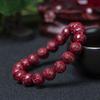 Pulseira de Contas Redondas com Caractere da Fortuna em Areia Dourada Roxa de Cinábrio Mineral Cru Natural com Alto Teor, Unissex, Acessório Versátil de Boa Sorte Presente