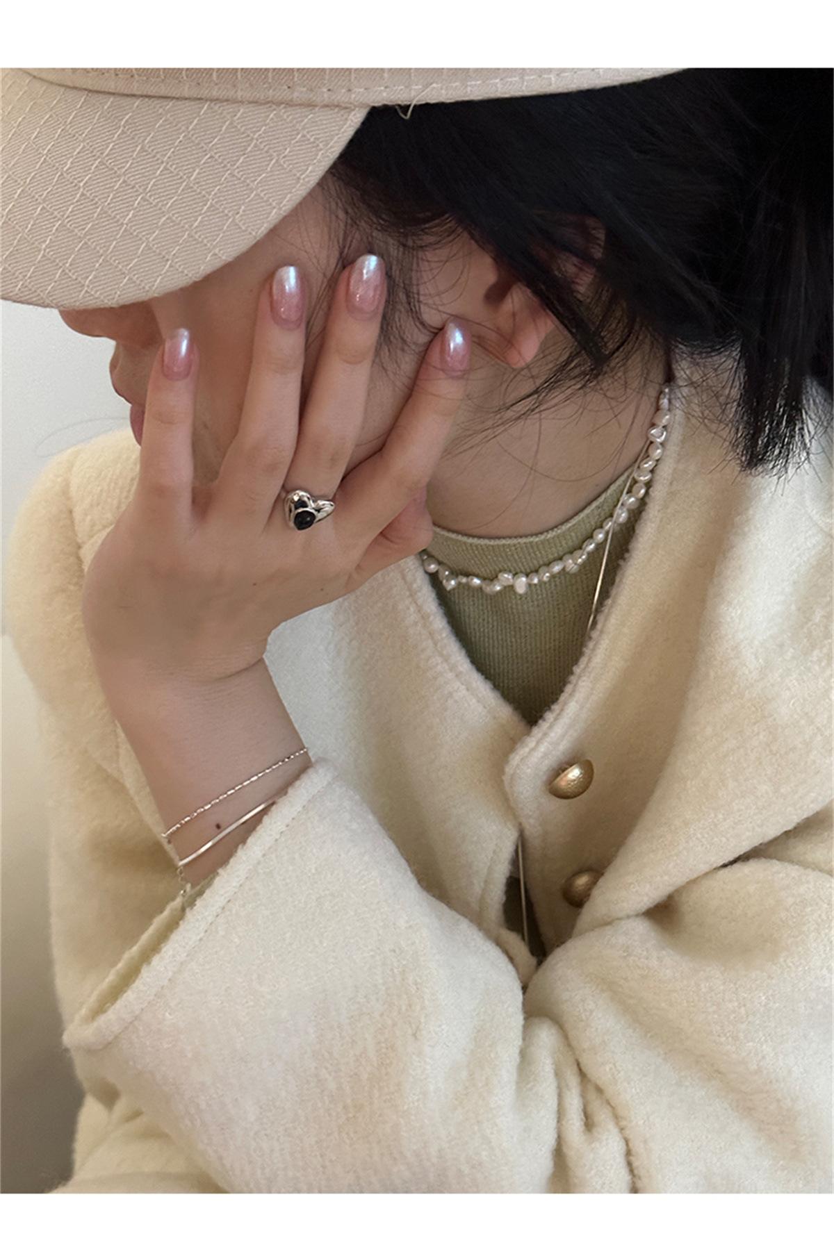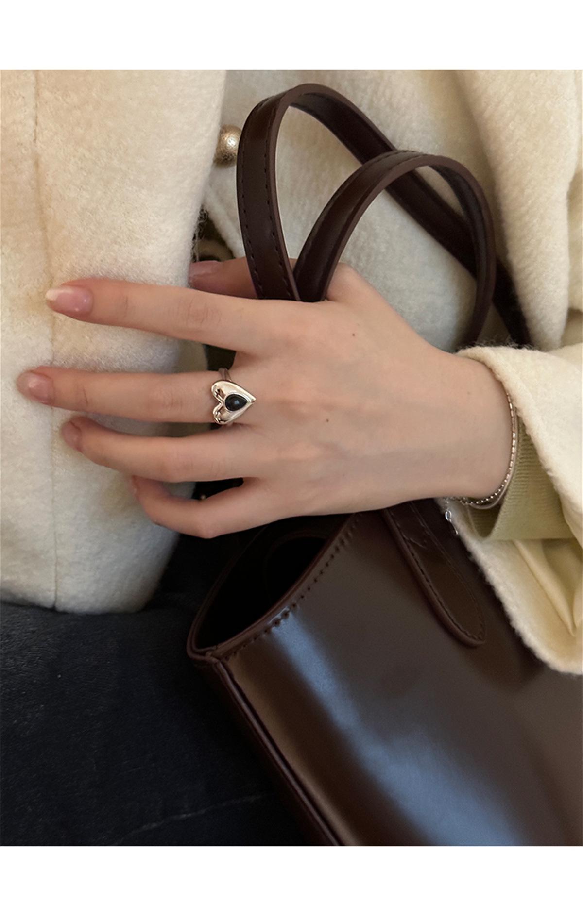 Anel de prata esterlina 925 gota d'água zircônia preta design de nicho feminino estilo frio lindo anel moda joias personalizadas