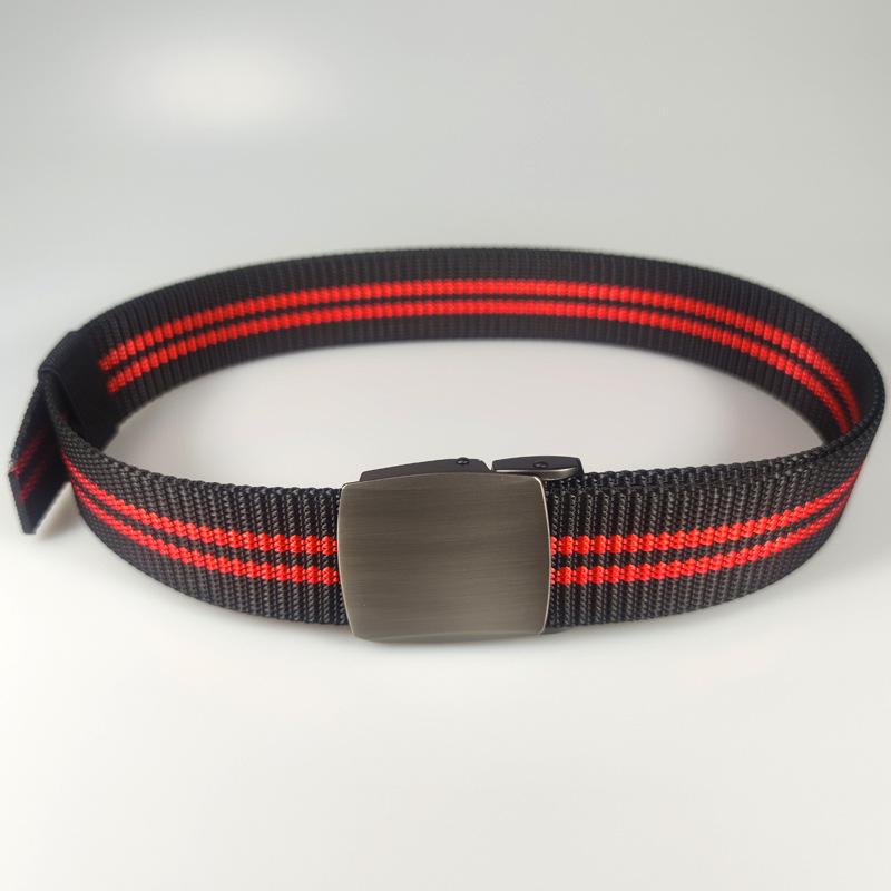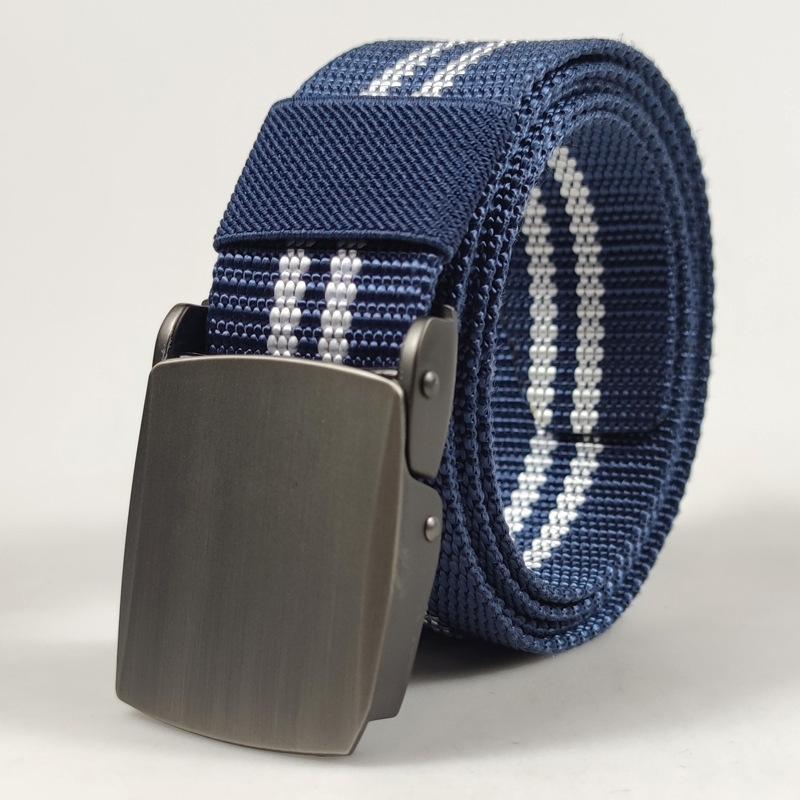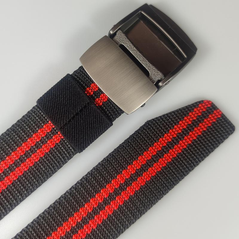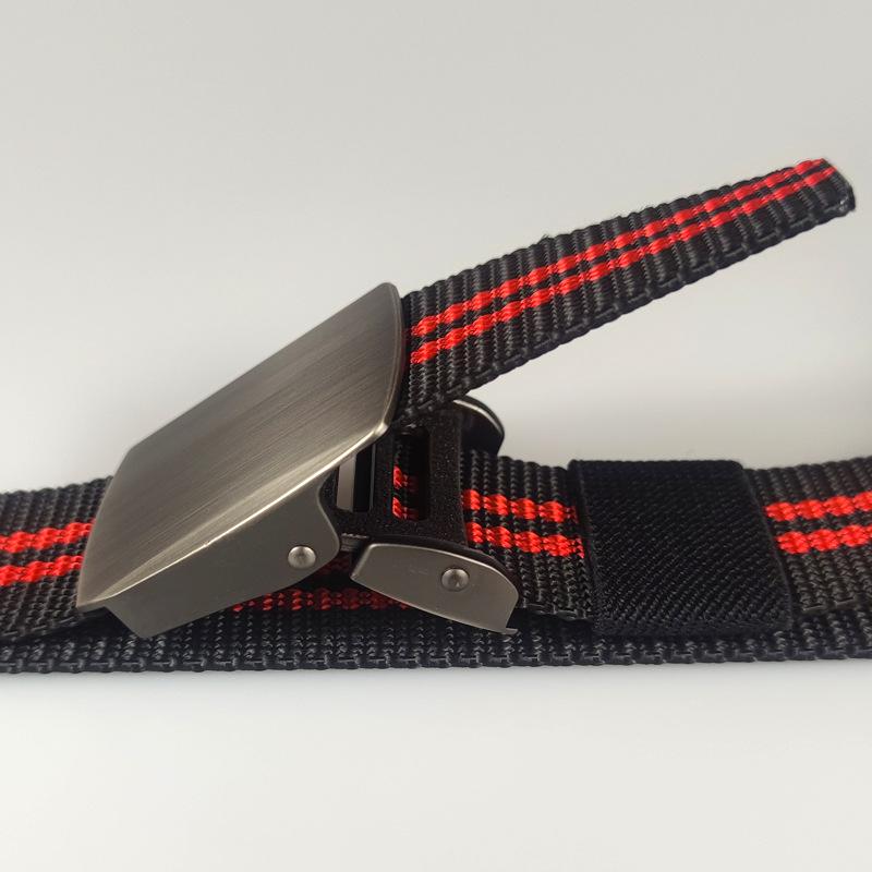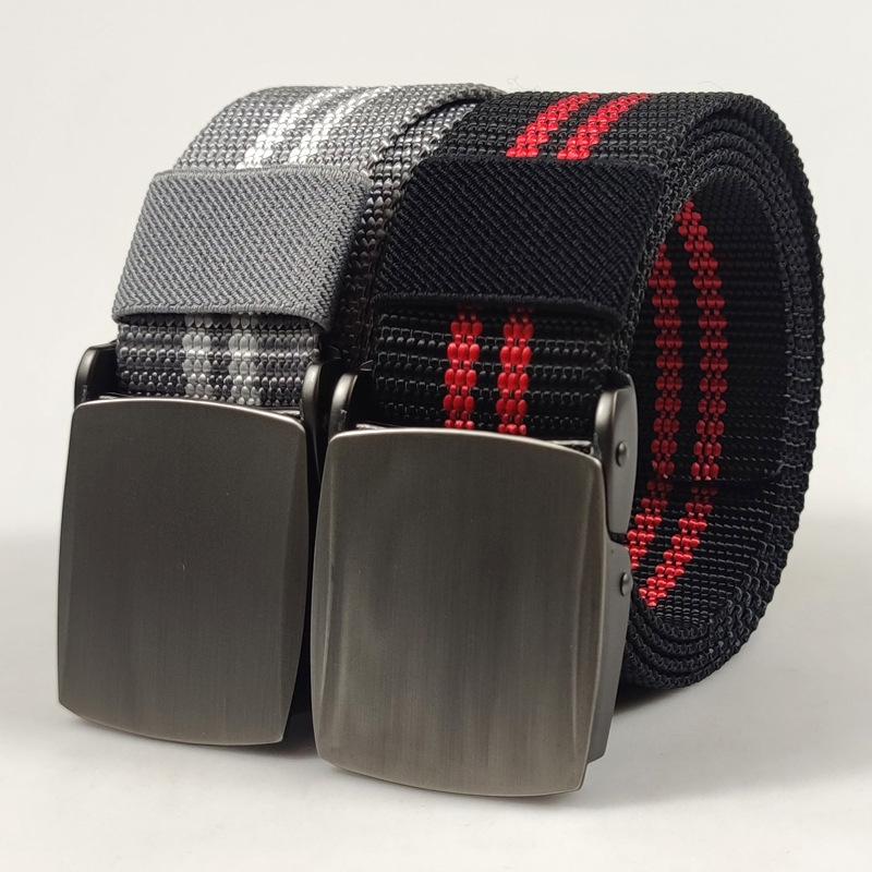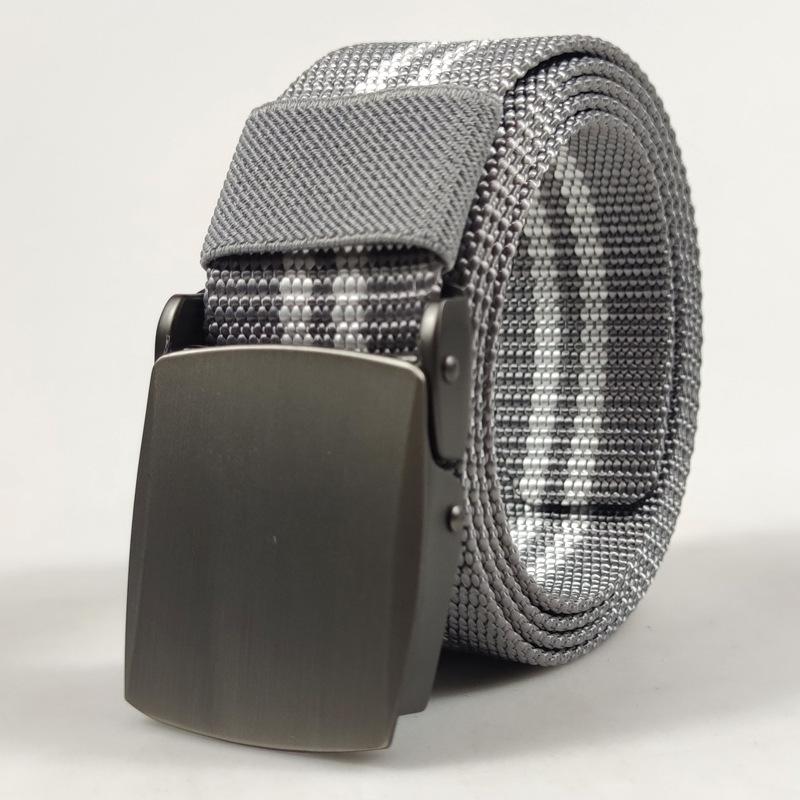 Spot supply 3.8cm listrado nylon cinto ao ar livre masculino liga cinza prata fivela automática moda cinto de lona