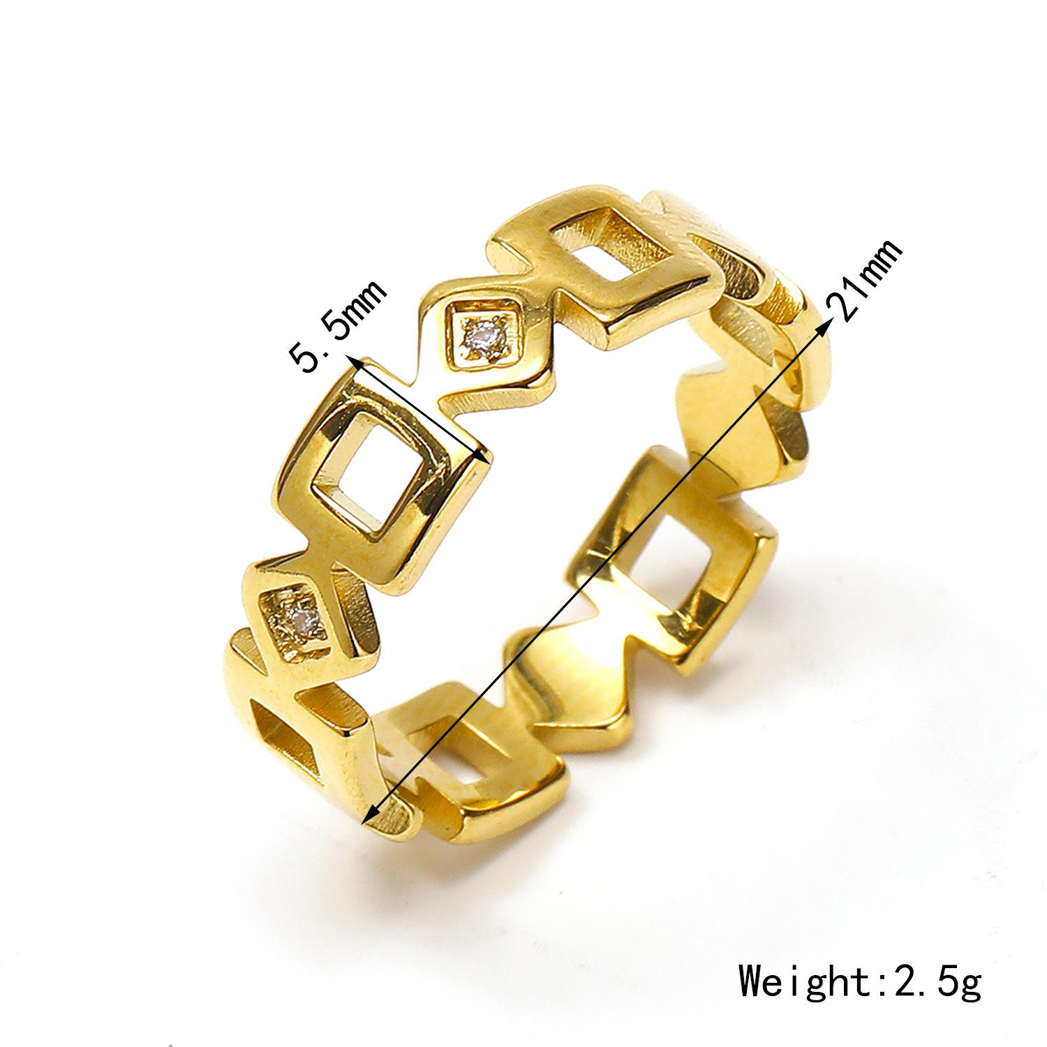 Estilo japonês e coreano ins nicho moda diamante oco geométrico anel de aço titânio anel de dedo de ouro 18k de aço titânio feminino