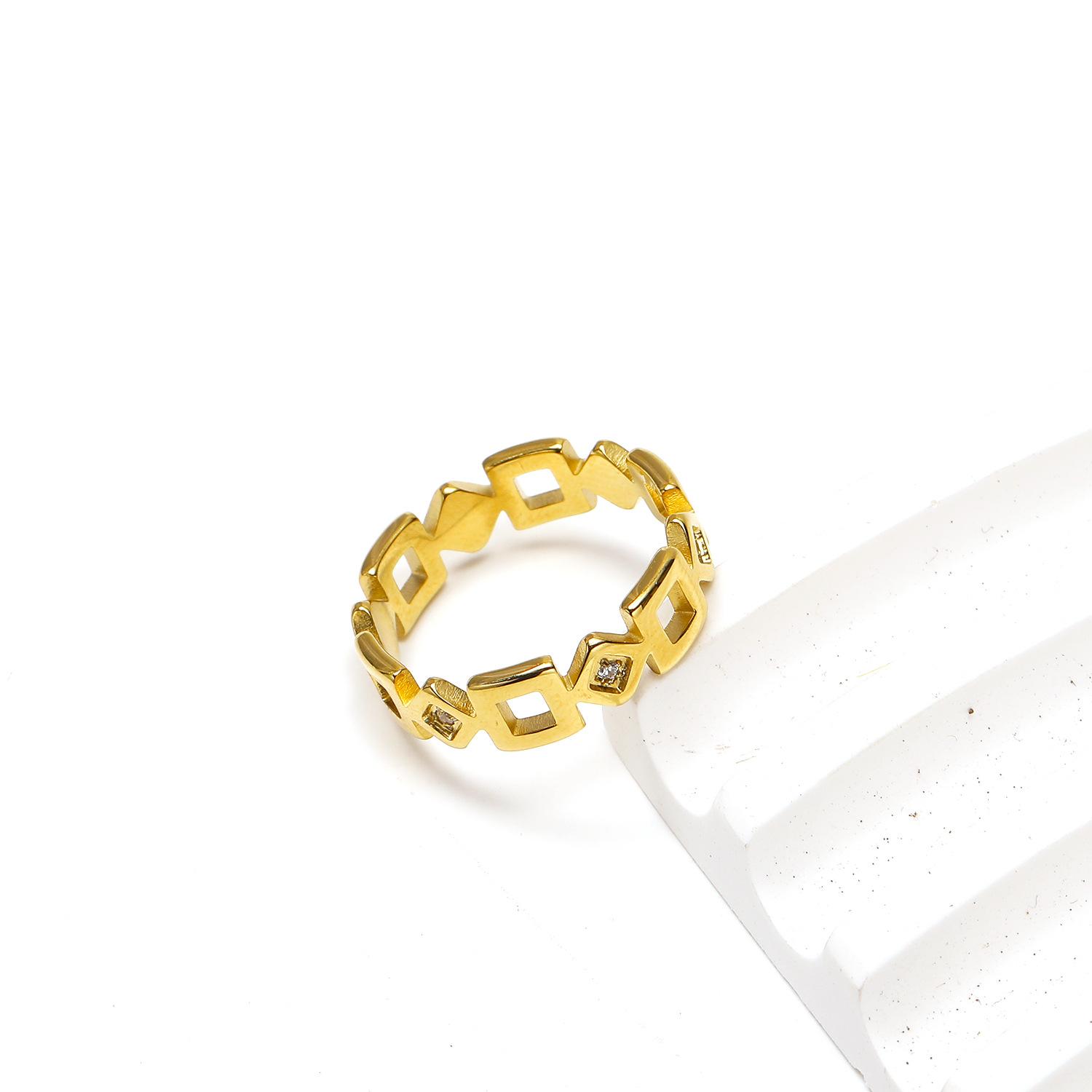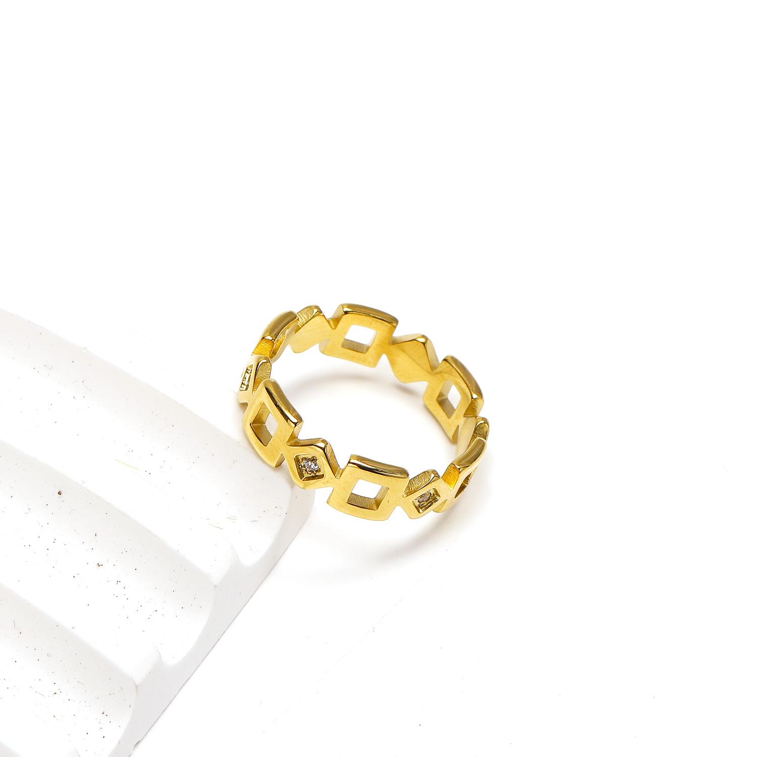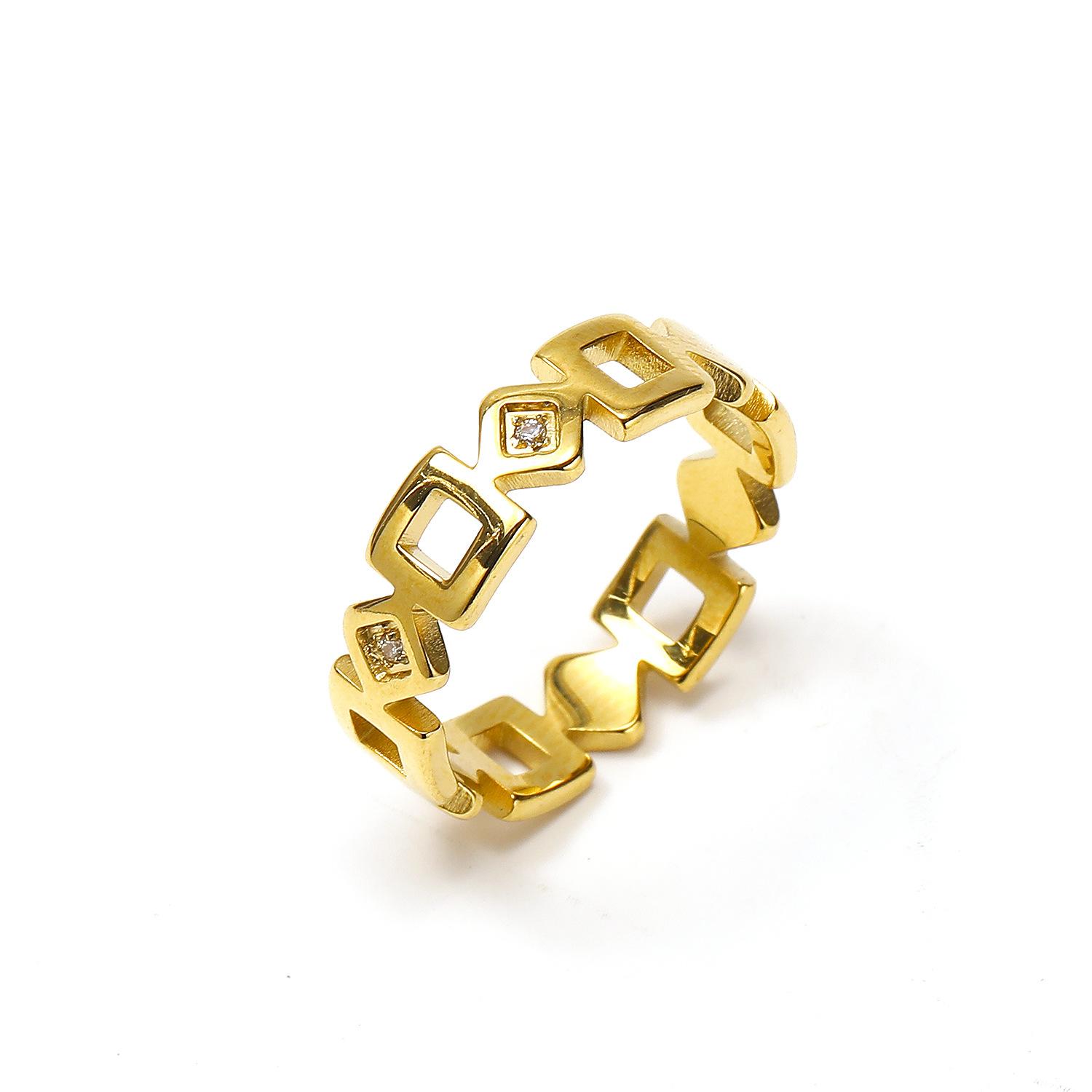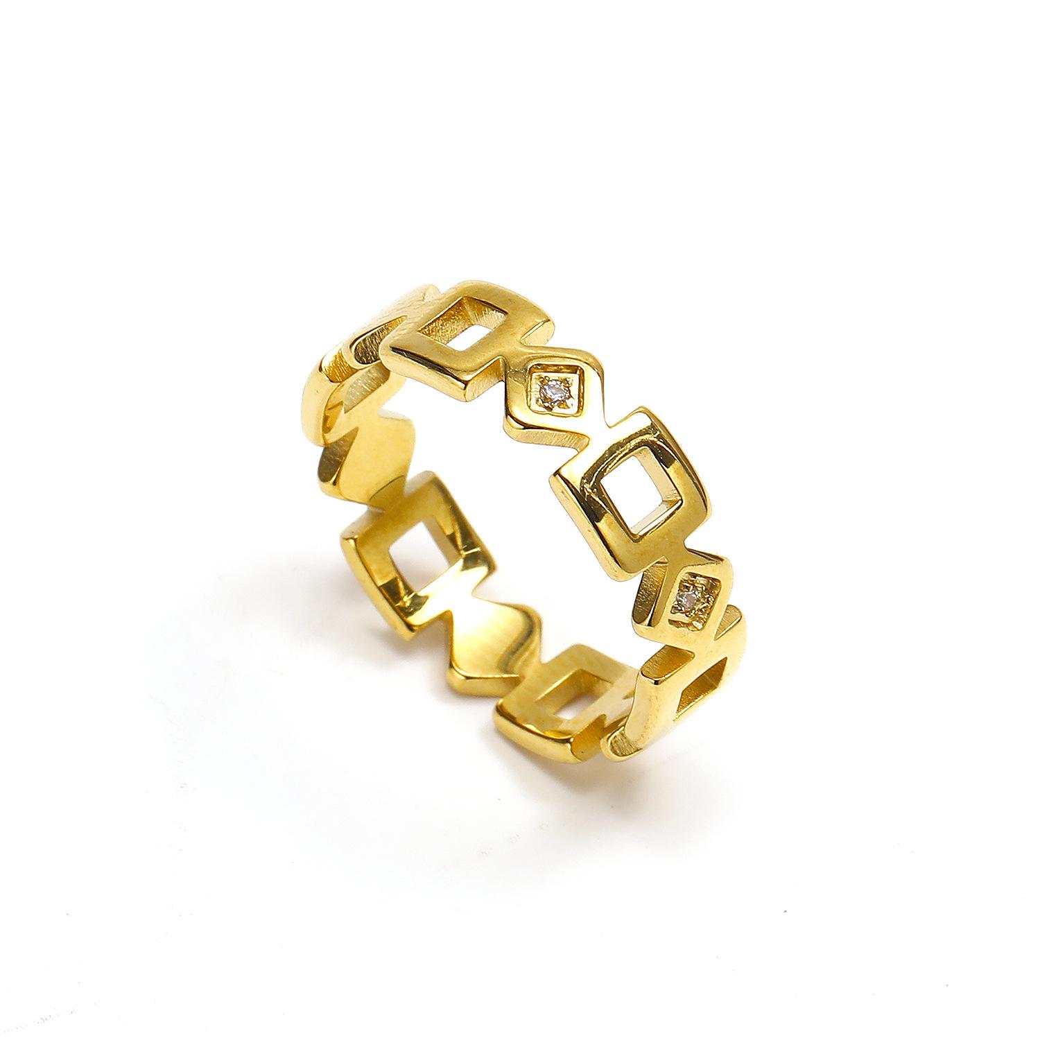 Compre Estilo japonês e coreano ins nicho moda diamante oco geométrico anel de aço titânio anel de dedo de ouro 18k de aço titânio feminino no atacado no Joom.pro