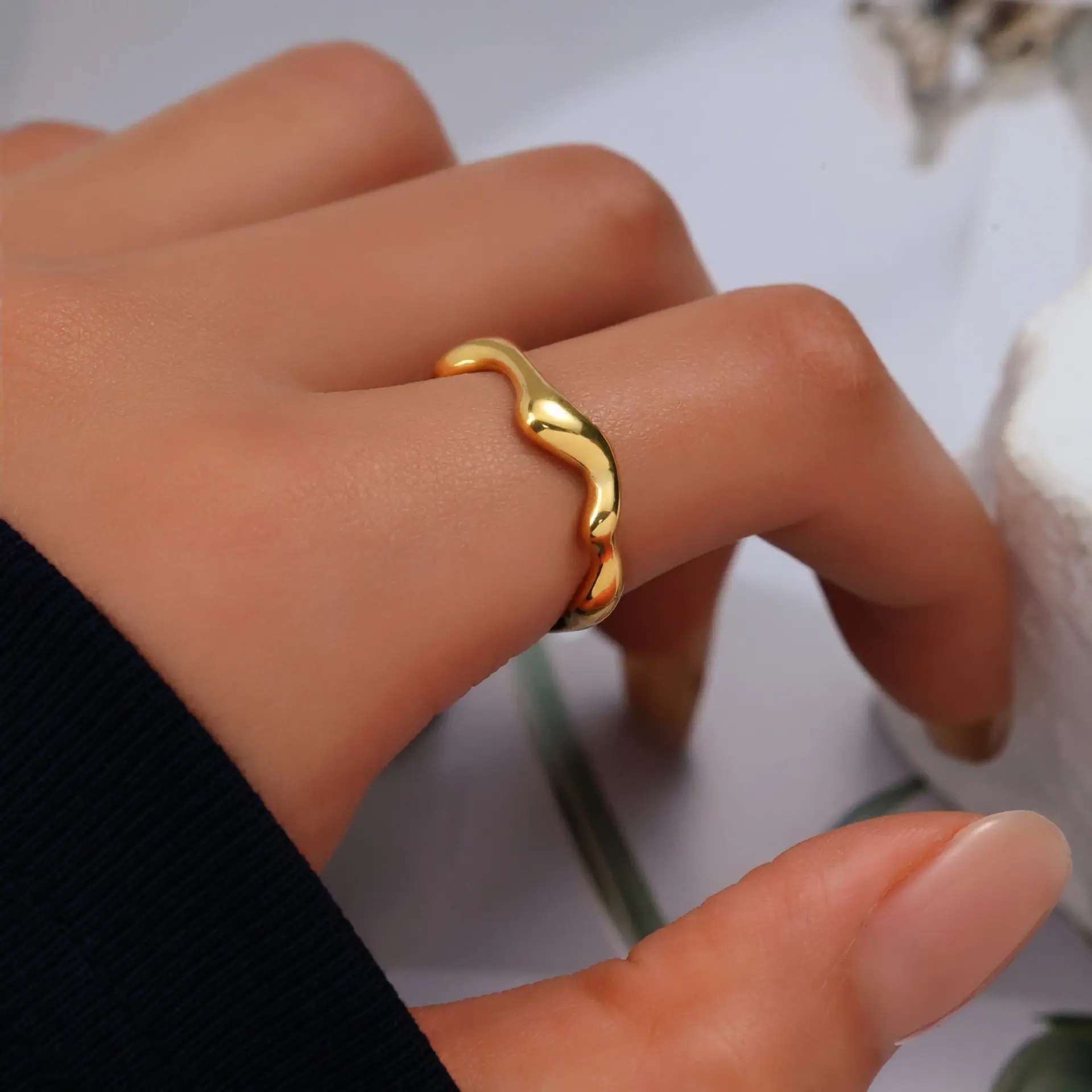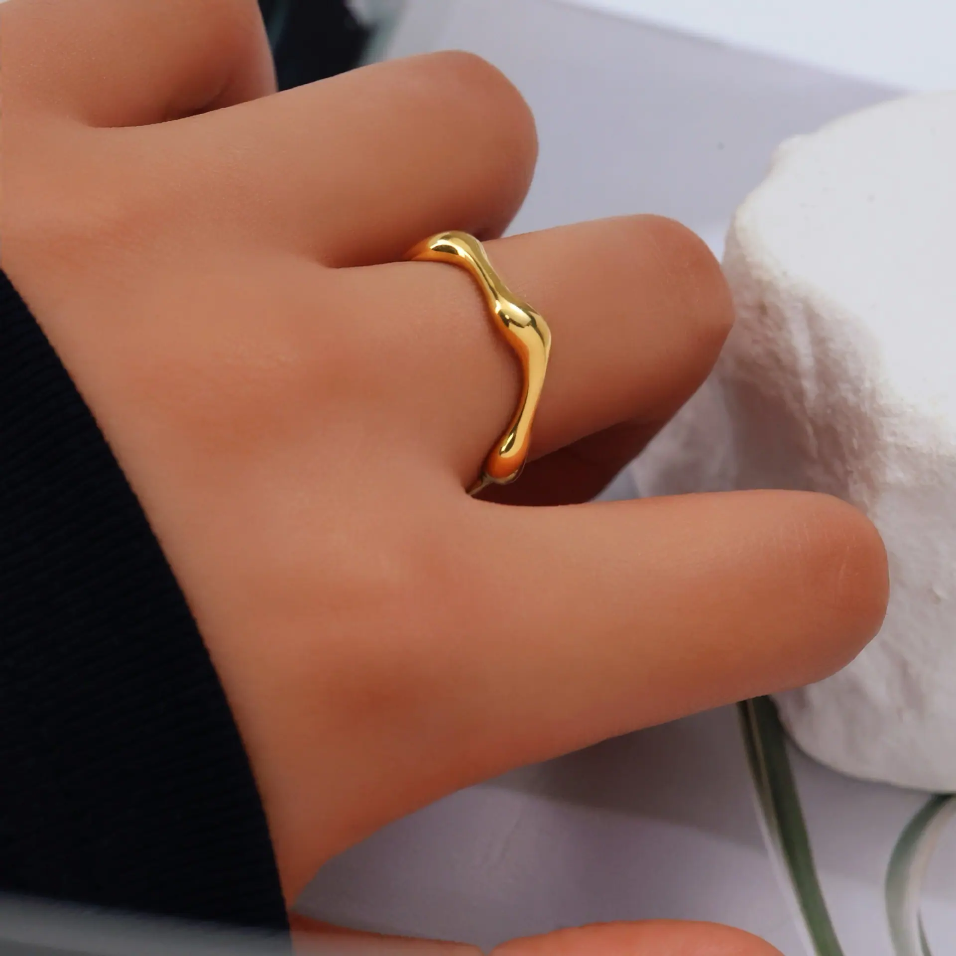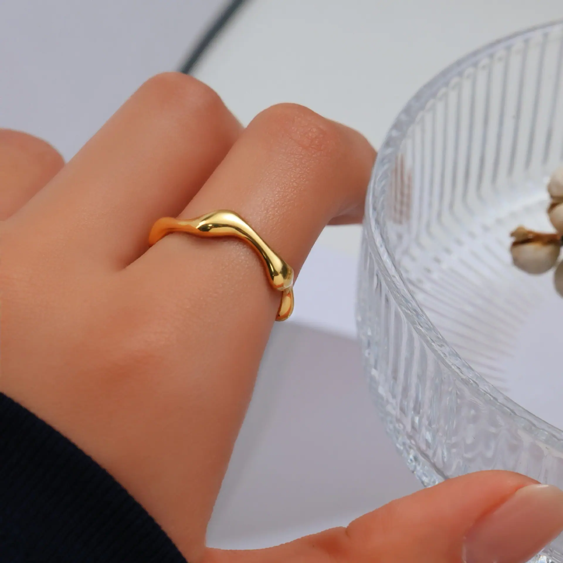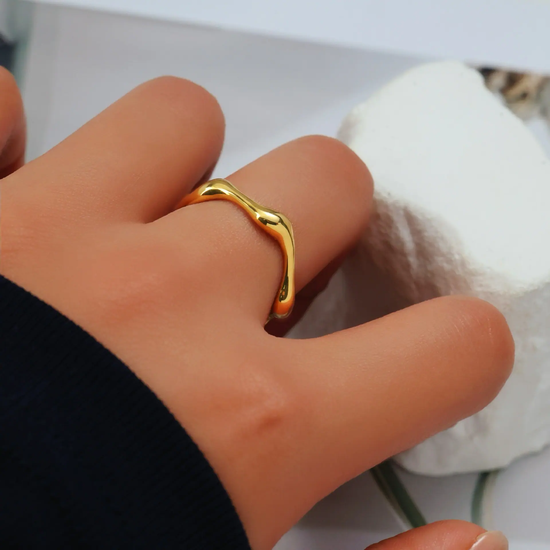 Japonês e coreano ins vintage design onda anel feminino moda personalizado simples anel de aço titânio sem cair atacado all-match
