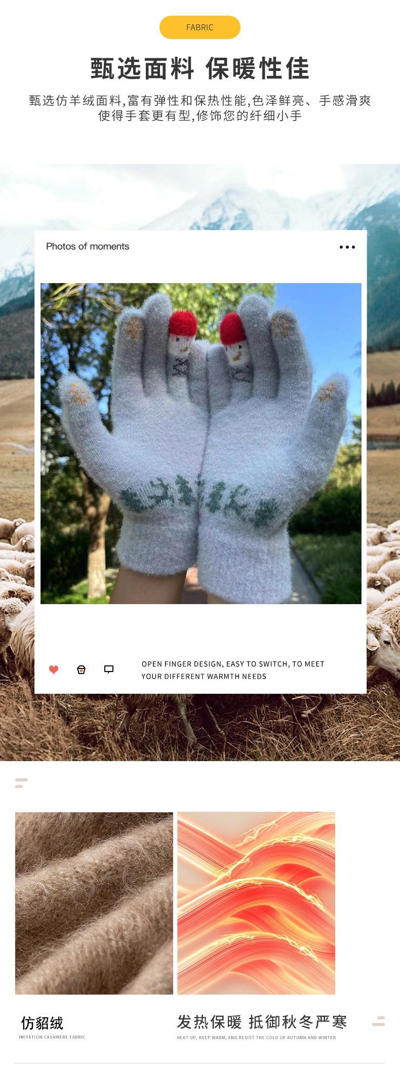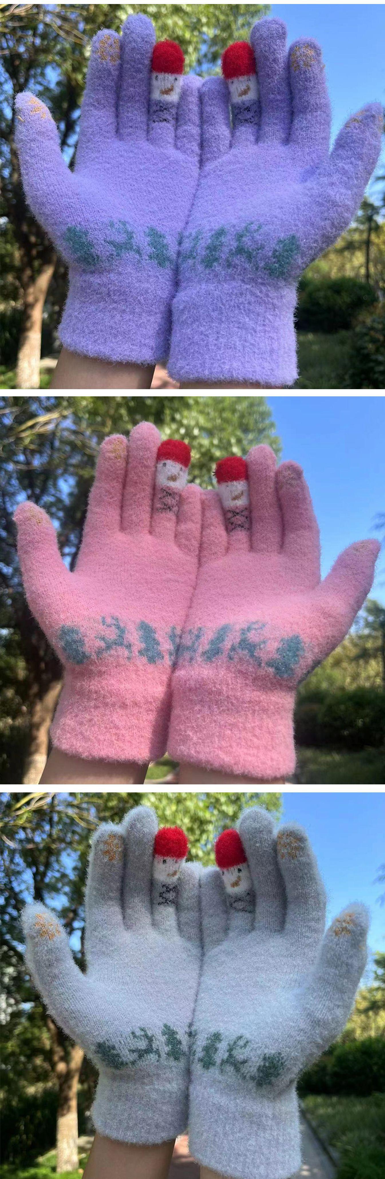Luvas novas de outono e inverno para homens e mulheres com tela sensível ao toque, tricô jacquard, imitação de vison, veludo para os dedos, para esqui ao ar livre, quentes para andar de bicicleta